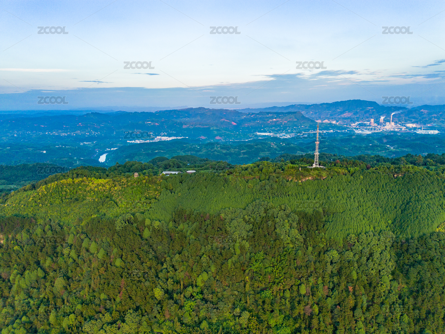航拍初秋阳光下中国四川绵阳太乙仙山植物园