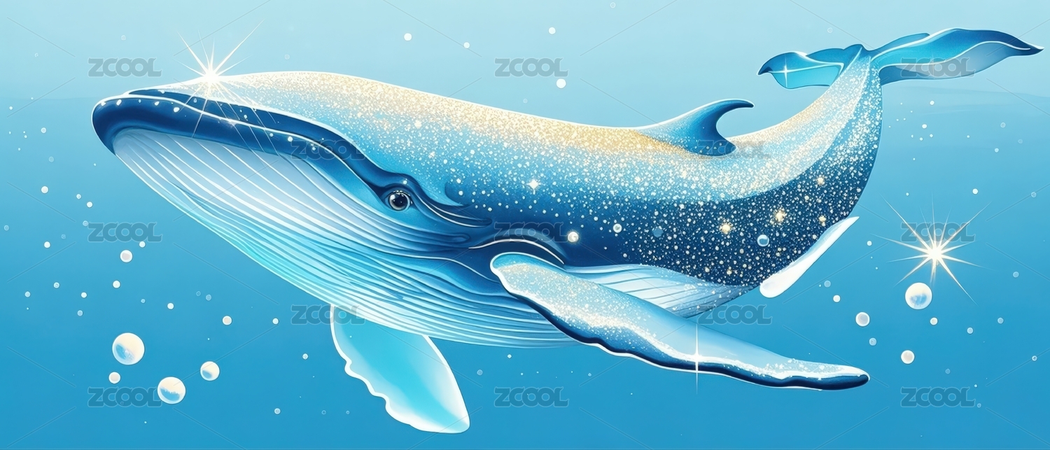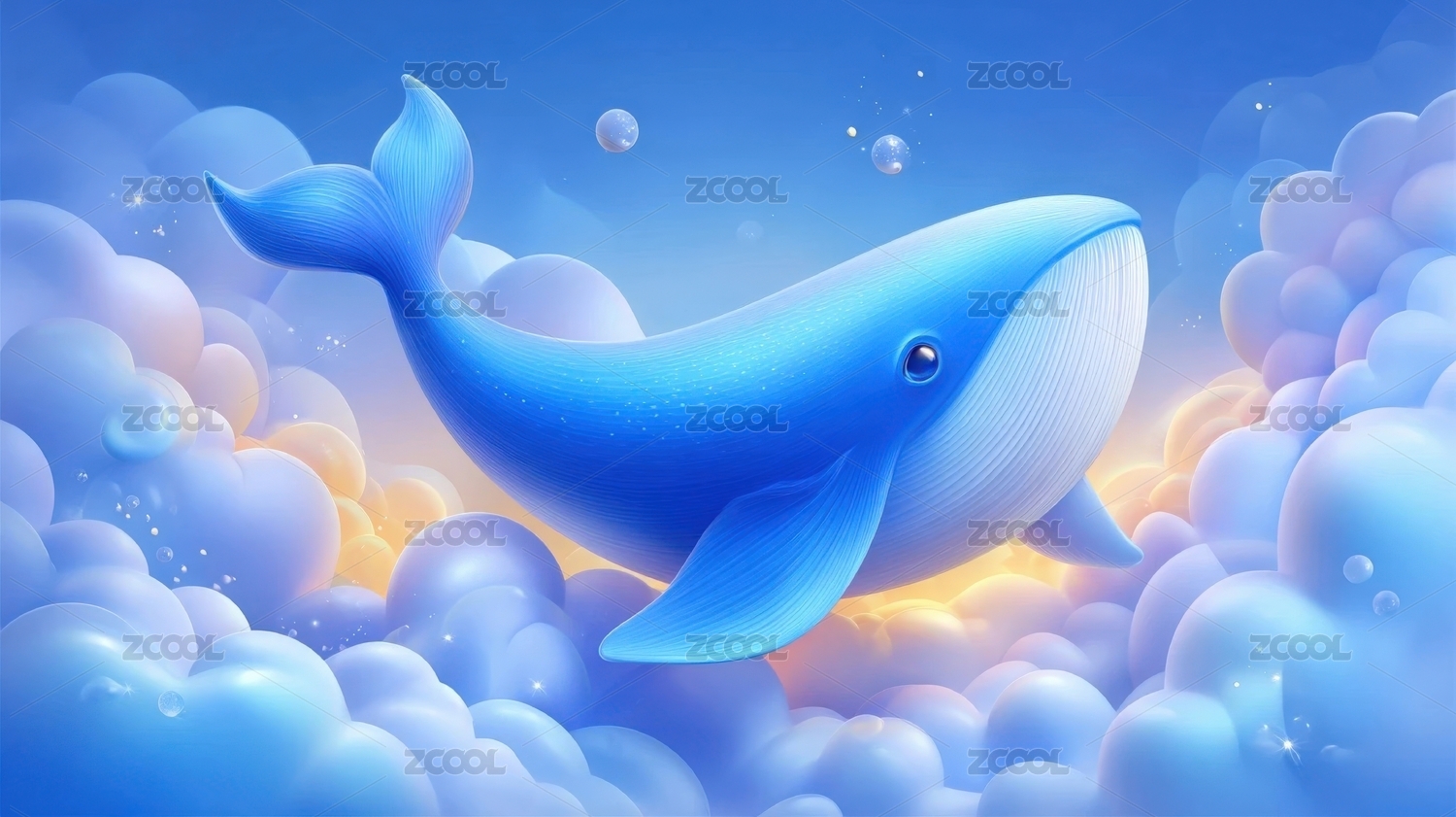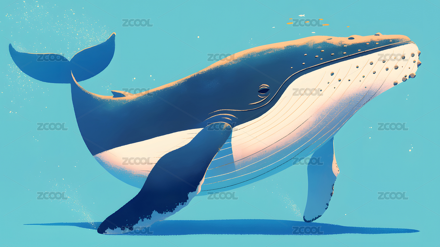 蓝鲸,逼真,插画,动物,自然,海洋,萌,童话,动漫,绘画