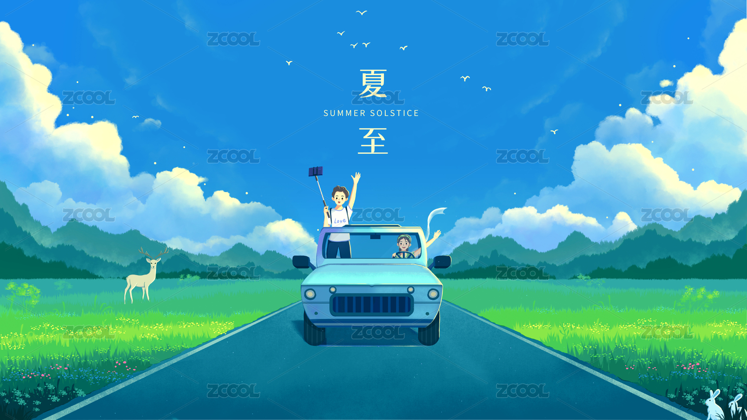 蓝天,白云,动漫,草丛,马路,天空,清新,户外,自然,旅游