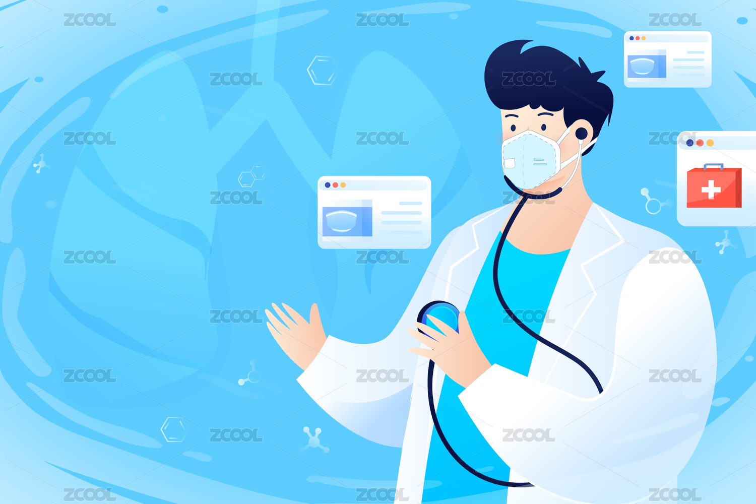 蓝色扁平风医生插画
