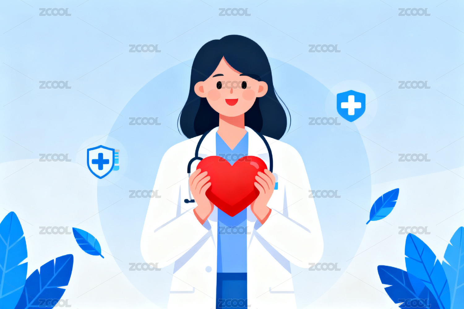 医生怀抱爱心象征健康守护