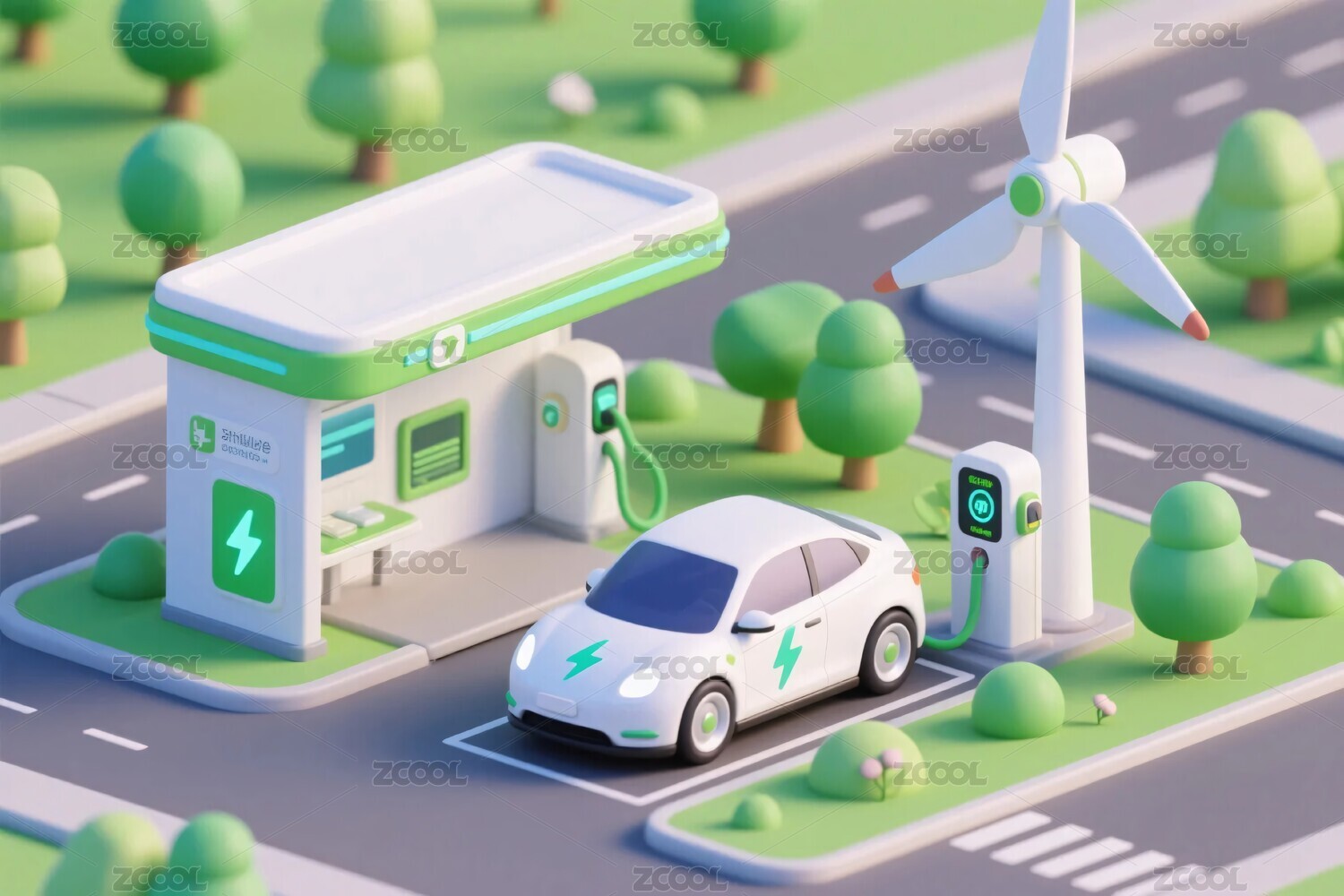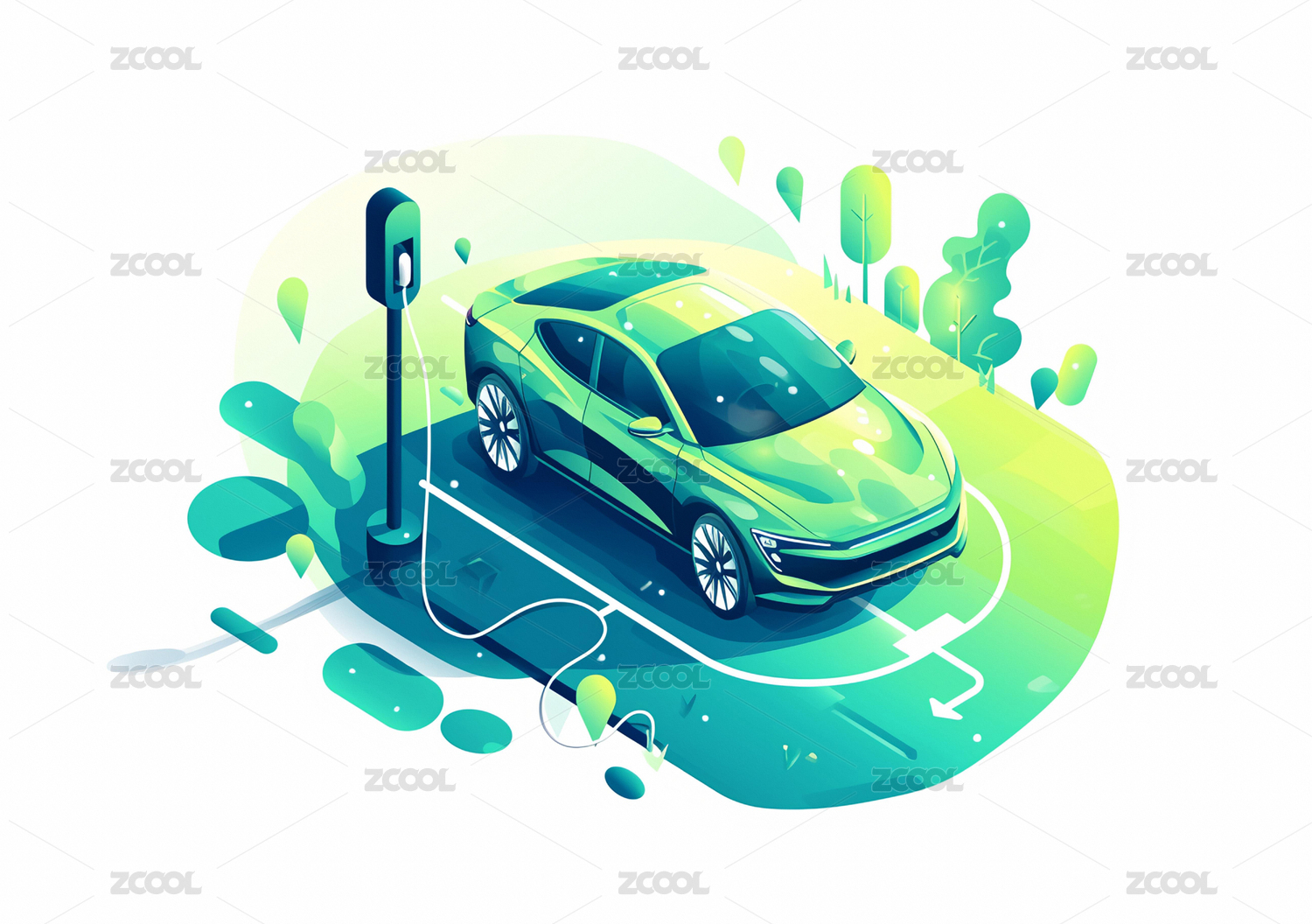 卡通2.5D汽车维修保养活动充电矢量背景插画
