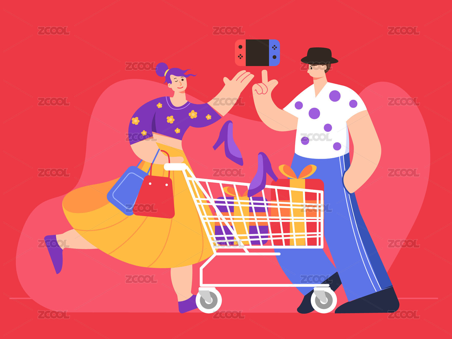 电商购物人物插画