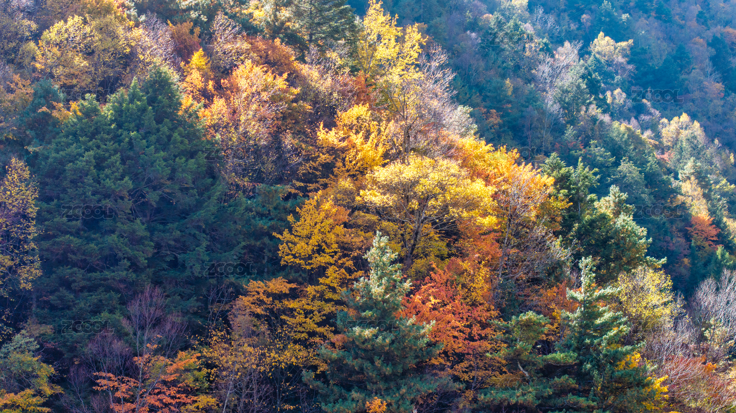 秋季美丽的树林山脉自然风光