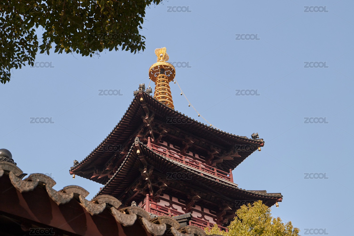 苏州寒山寺景点的普照宝塔仰视