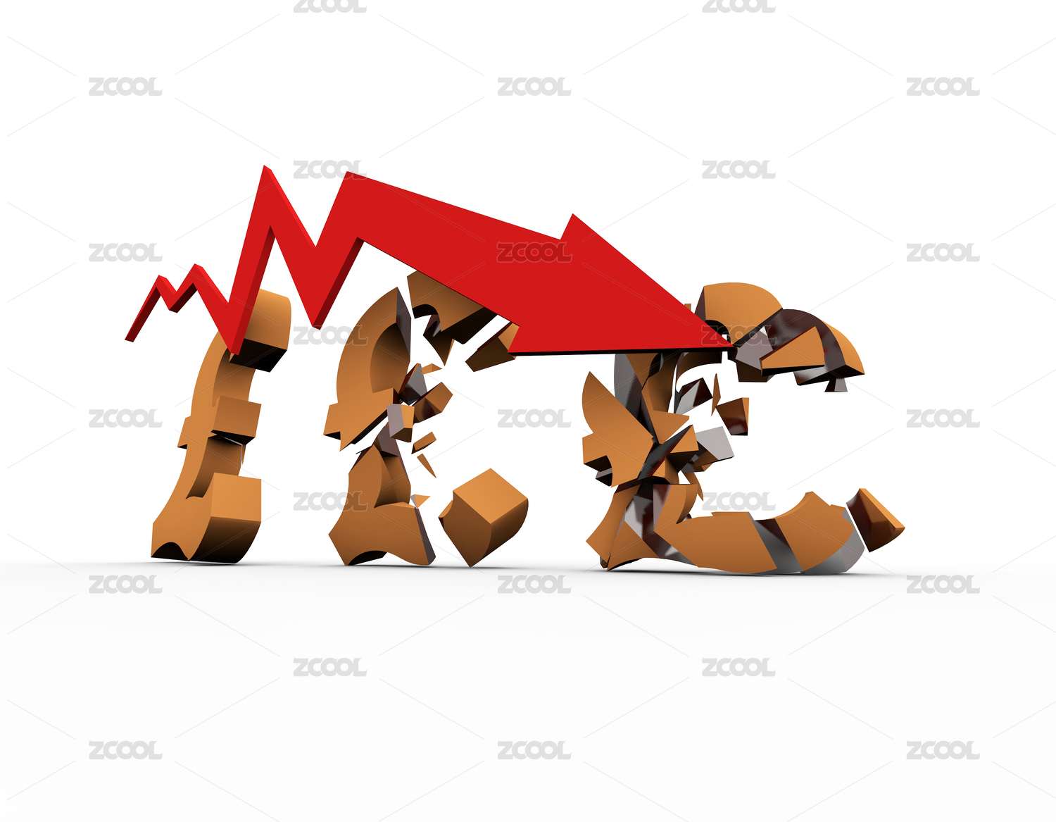 金融经济衰退,货币贬值,下降的箭头,欧元符号