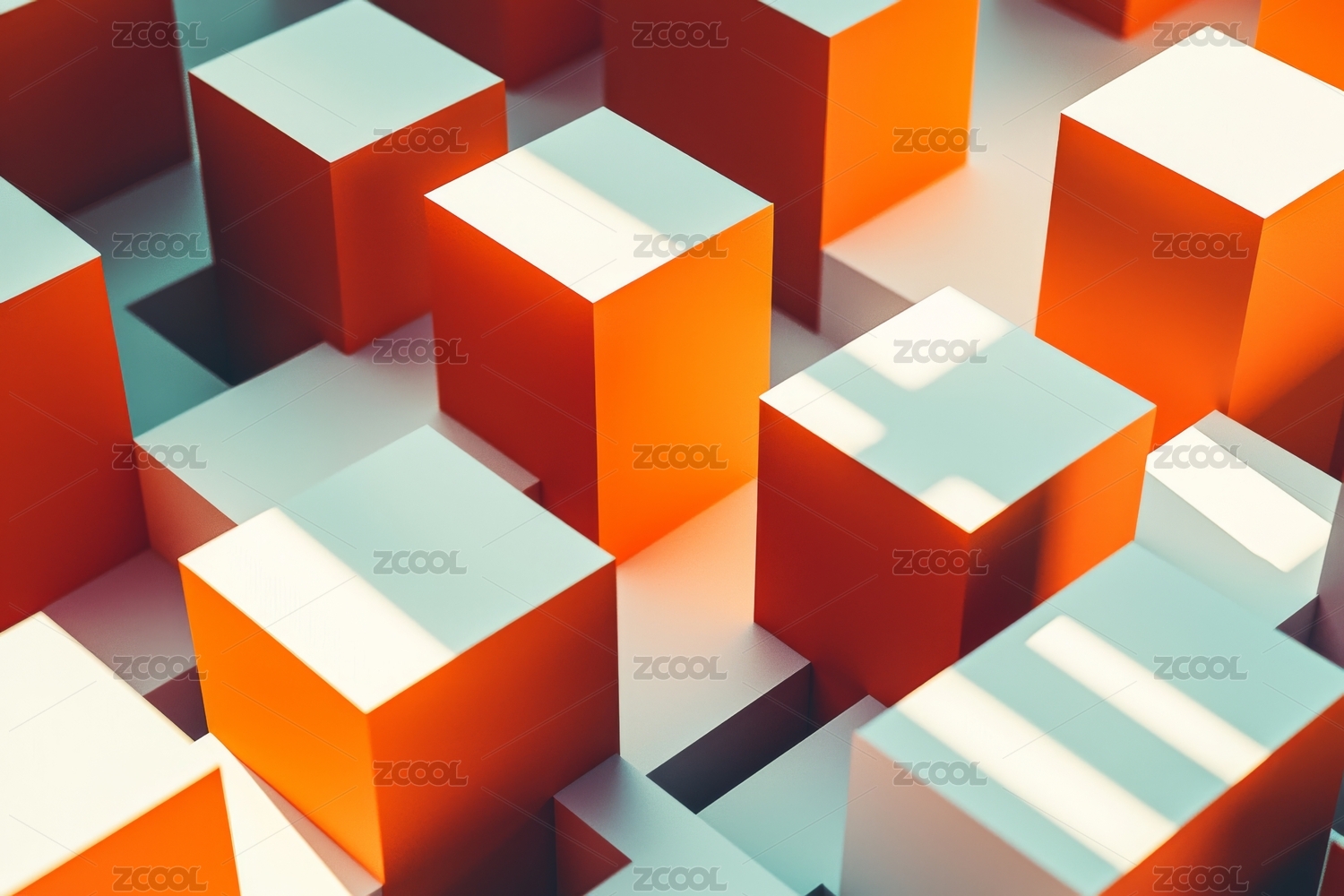 蓝色与橙色立方体的几何排列