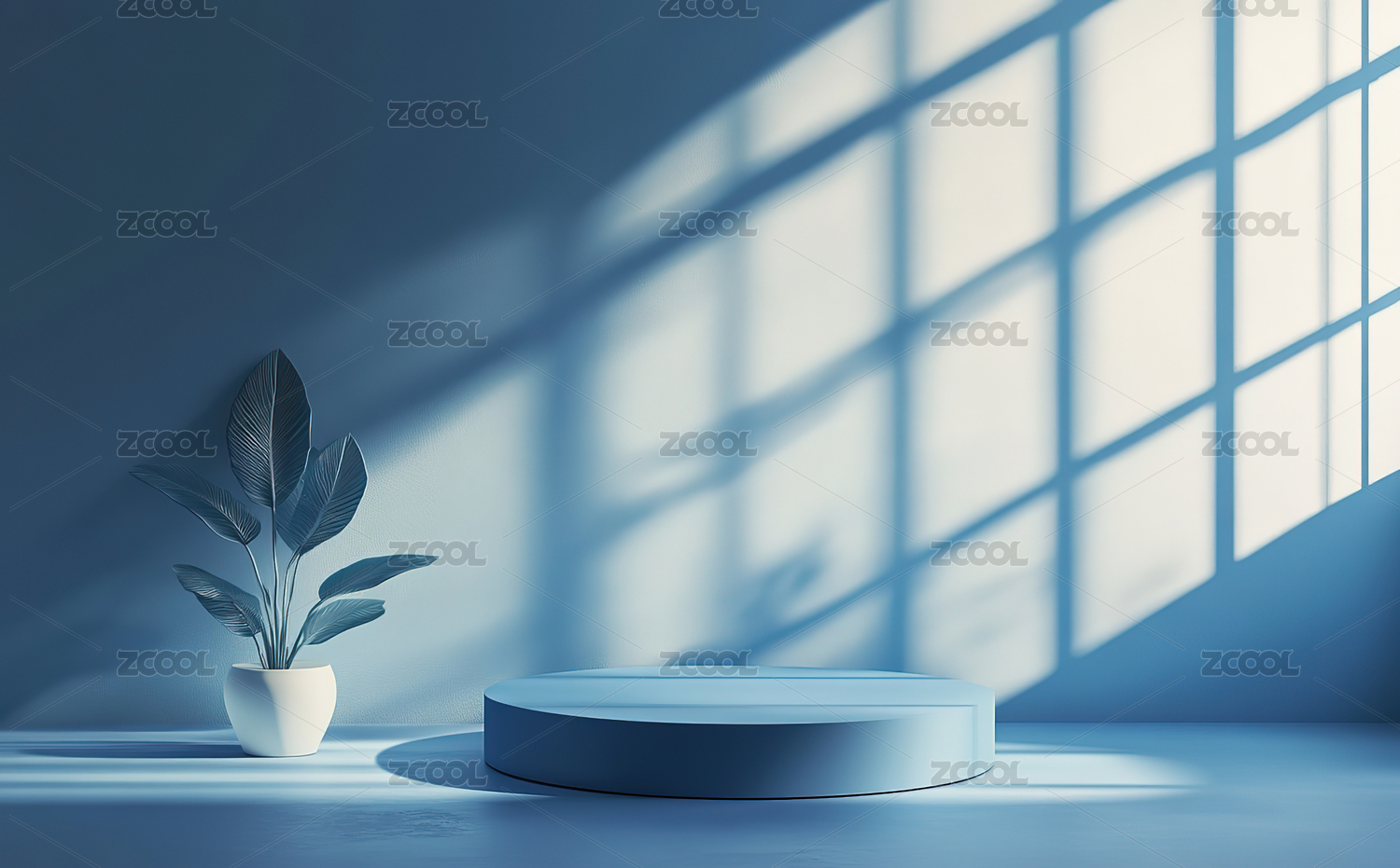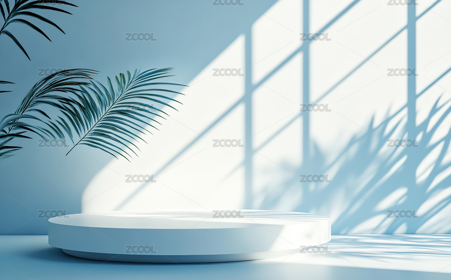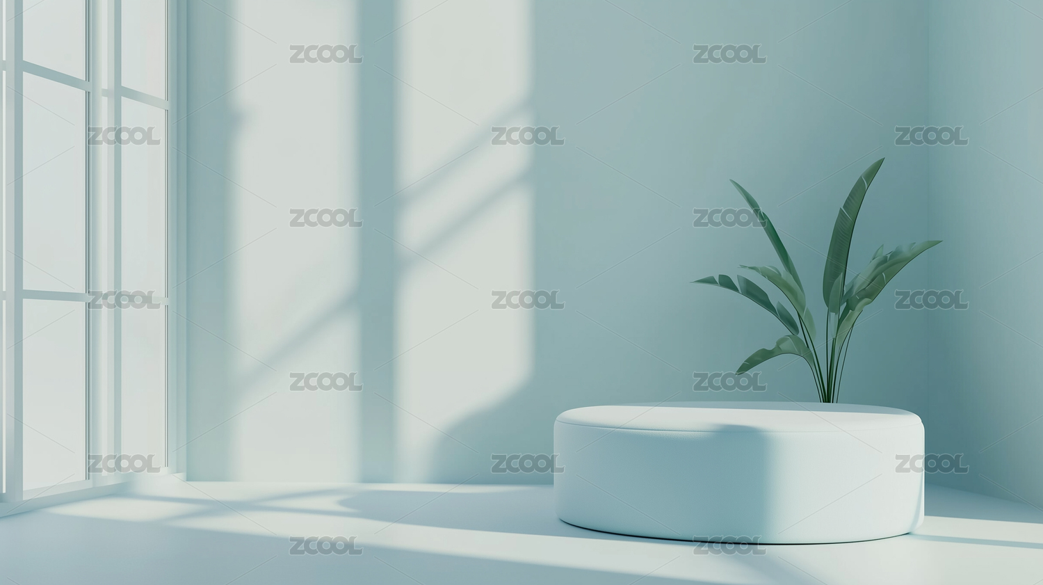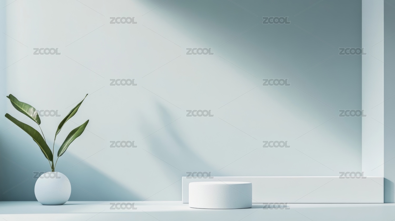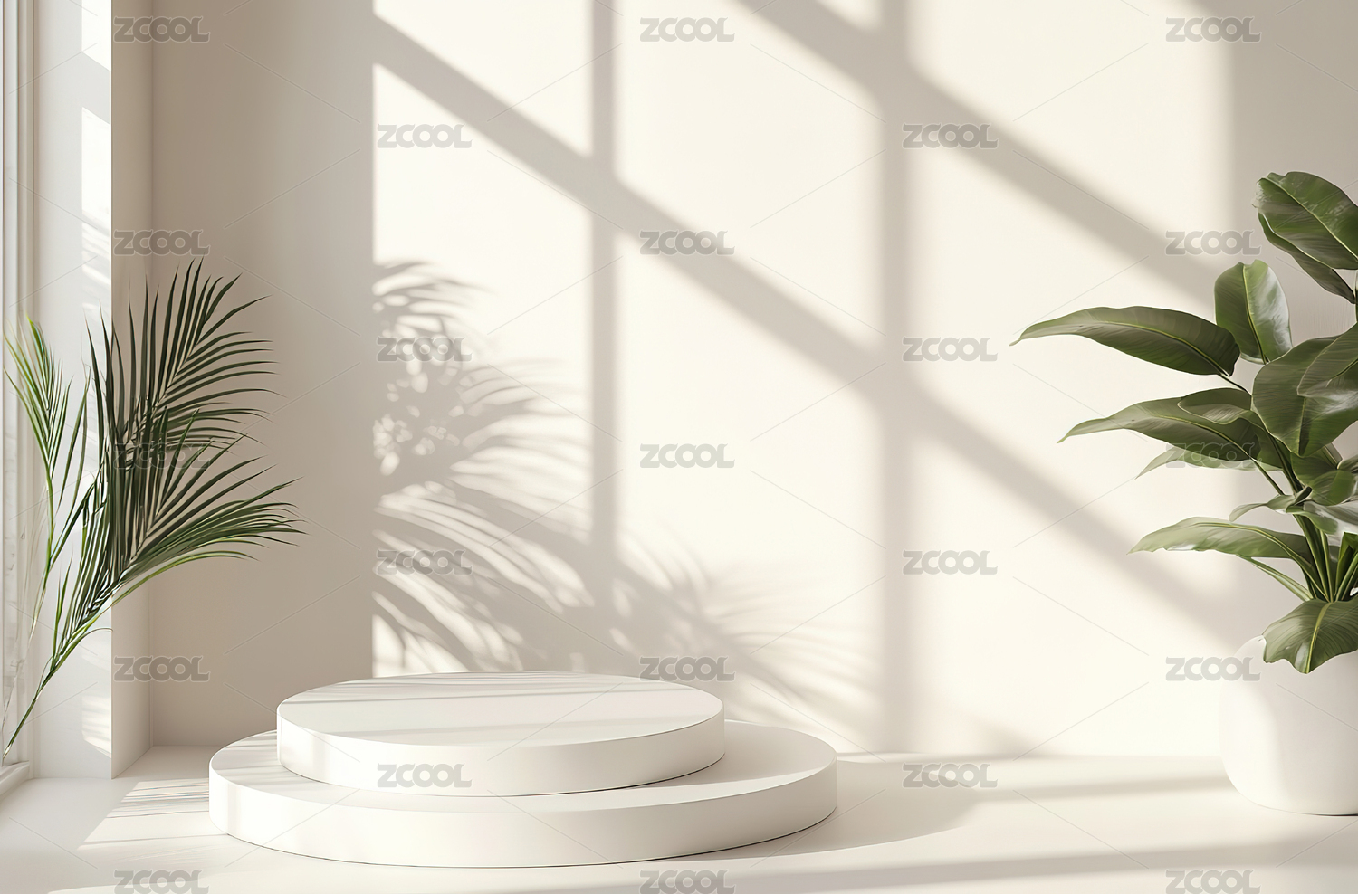 简约白色场景中的植物与圆柱形平台
