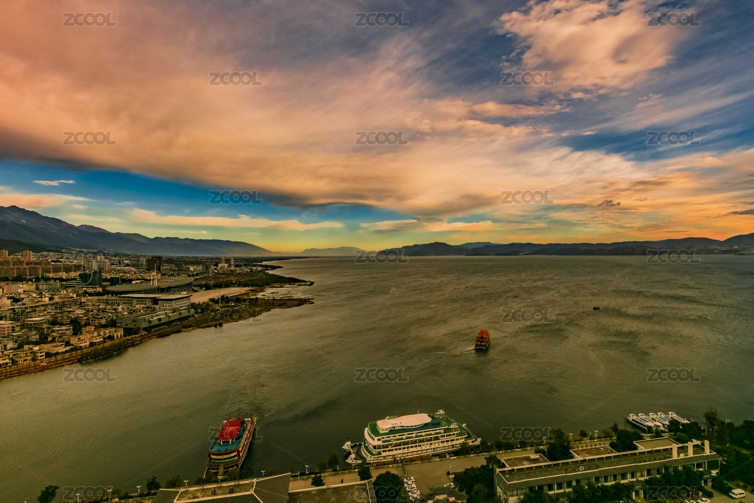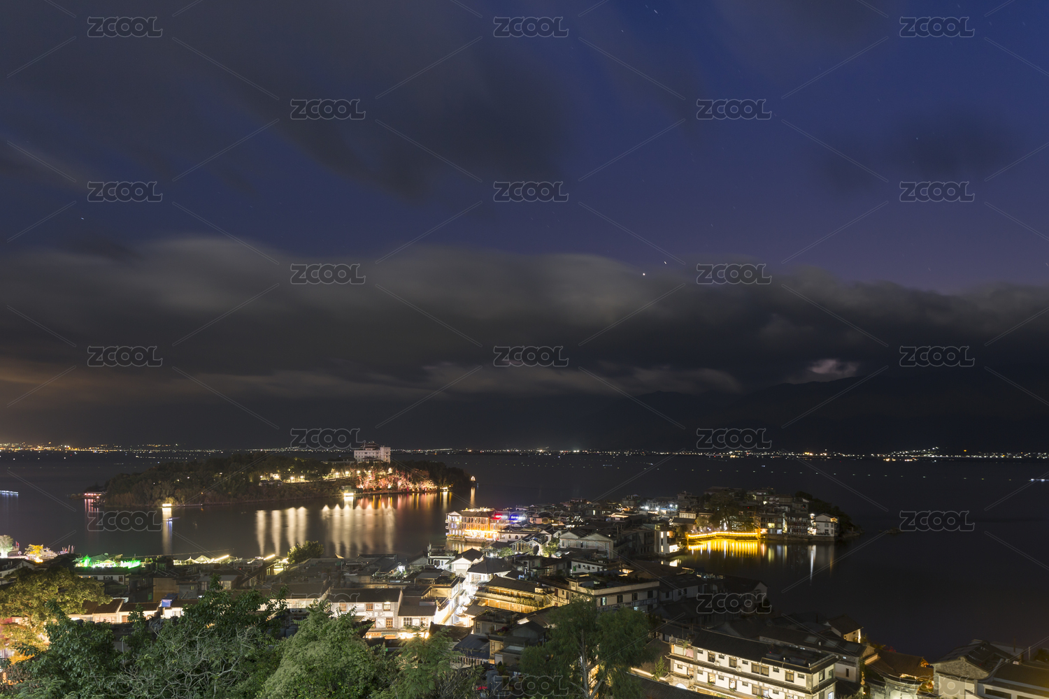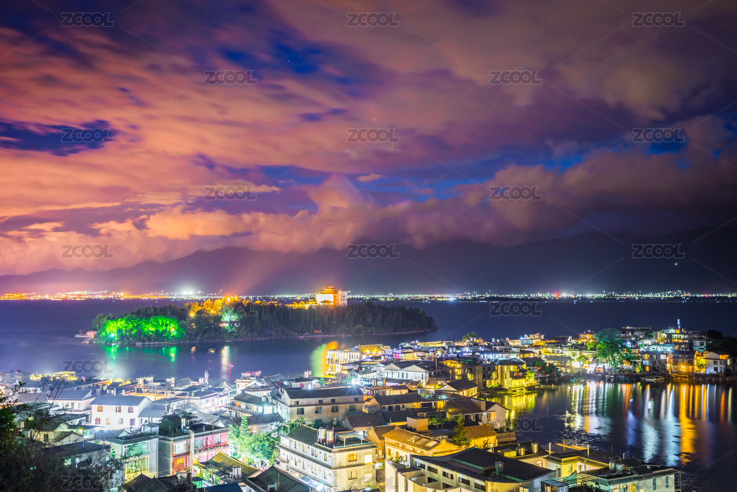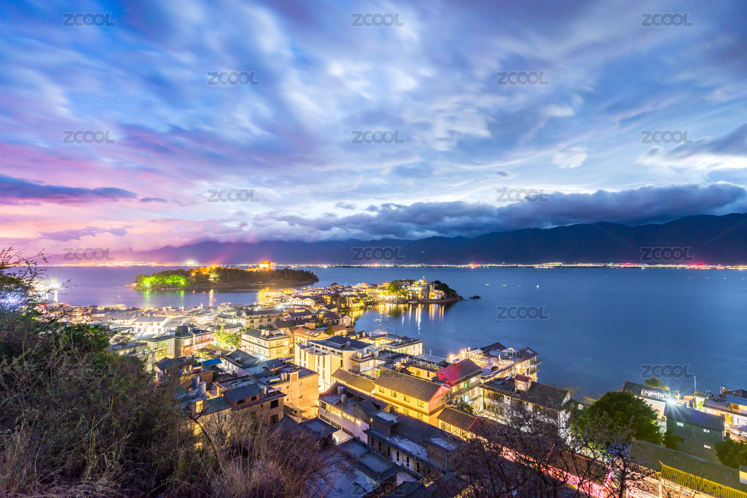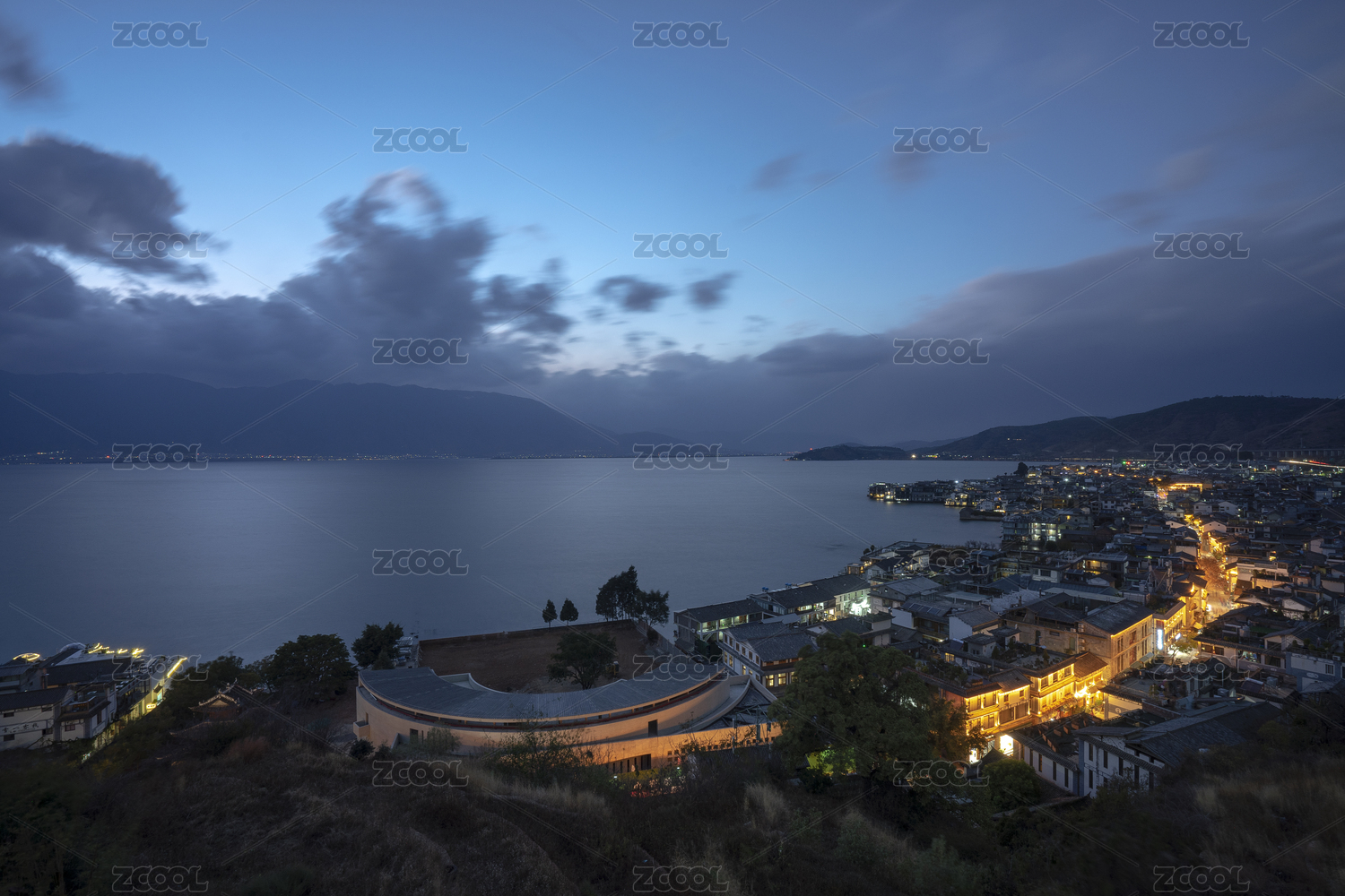 大理,双廊,夜景,白天,晚间,天空,地平线,云,天际线,晚