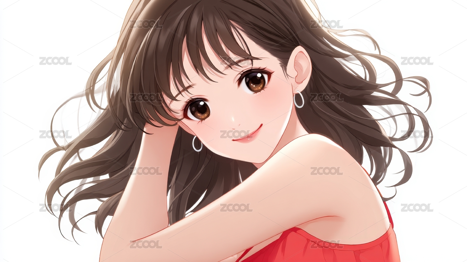 红色动漫美少女头像特写