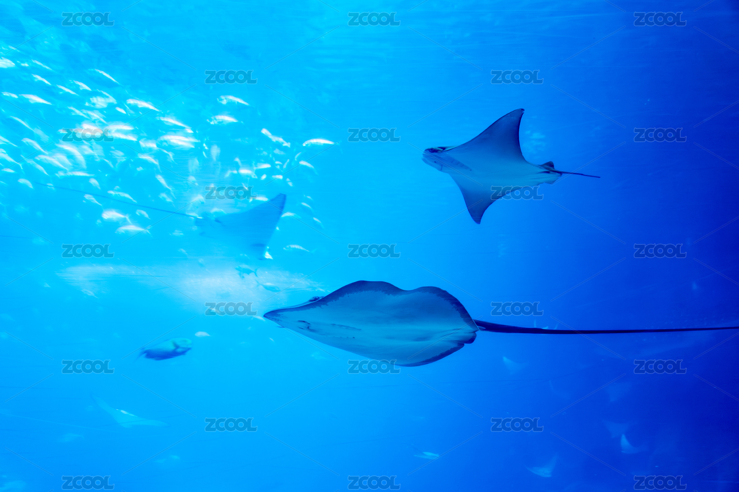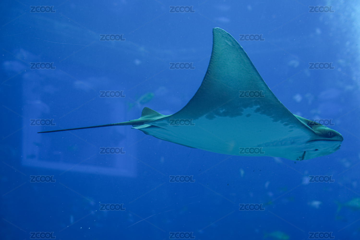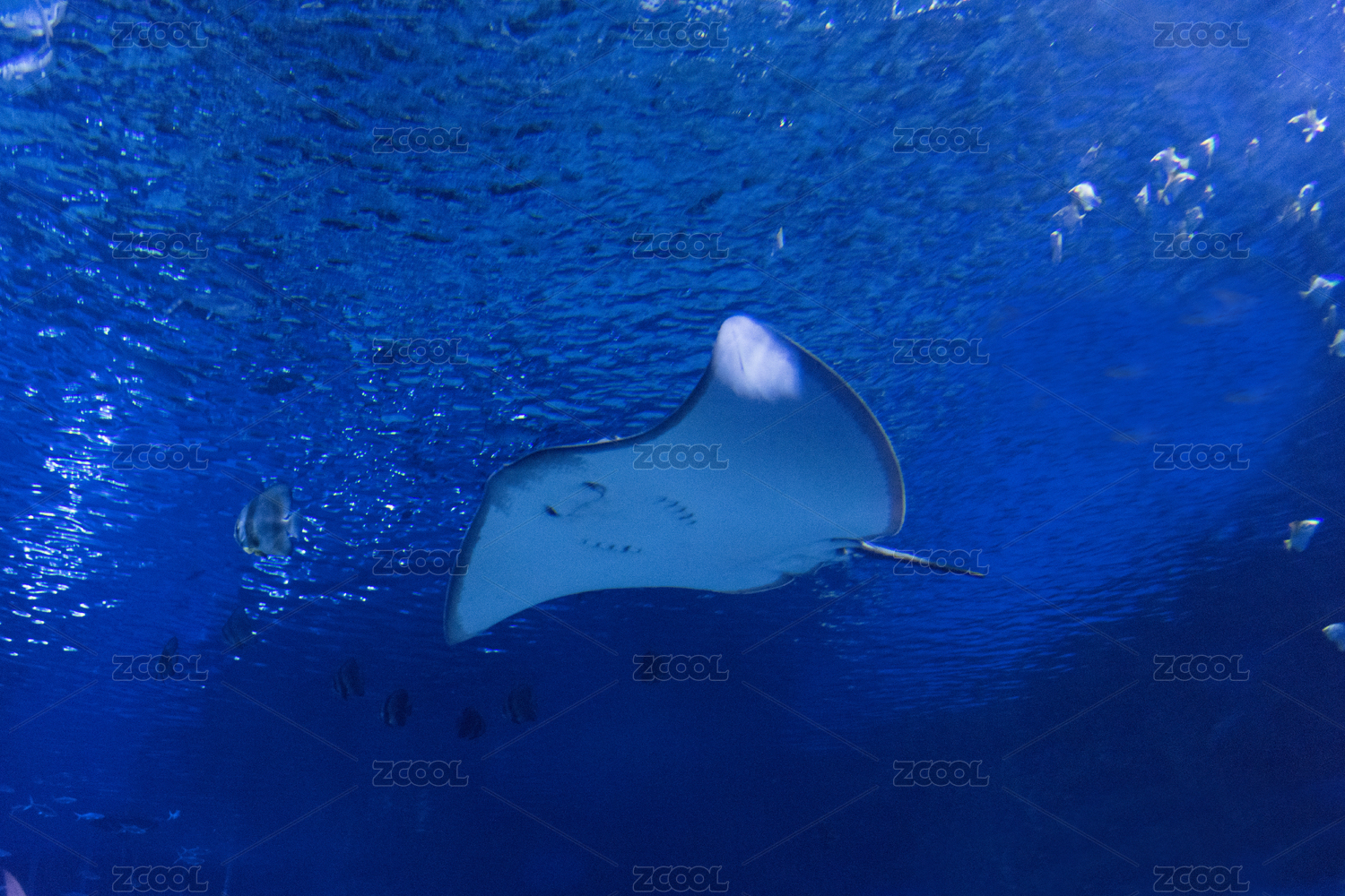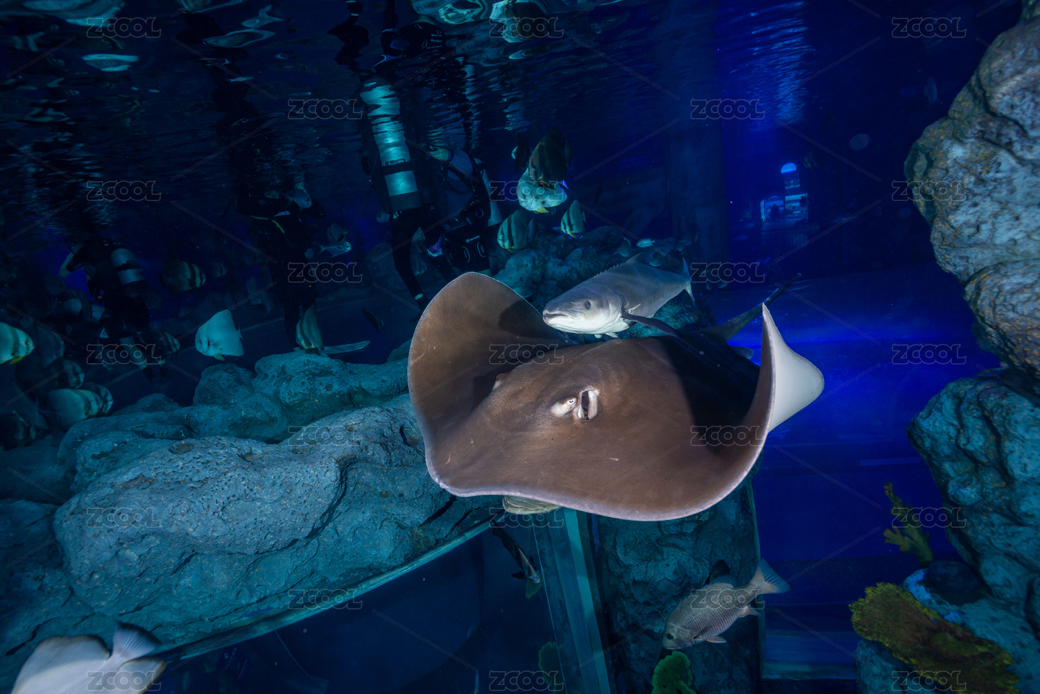 成都极地海洋公园水族箱中正在游泳的蝠鲼