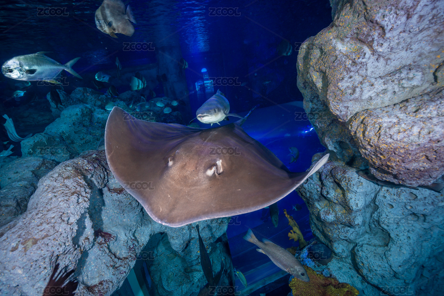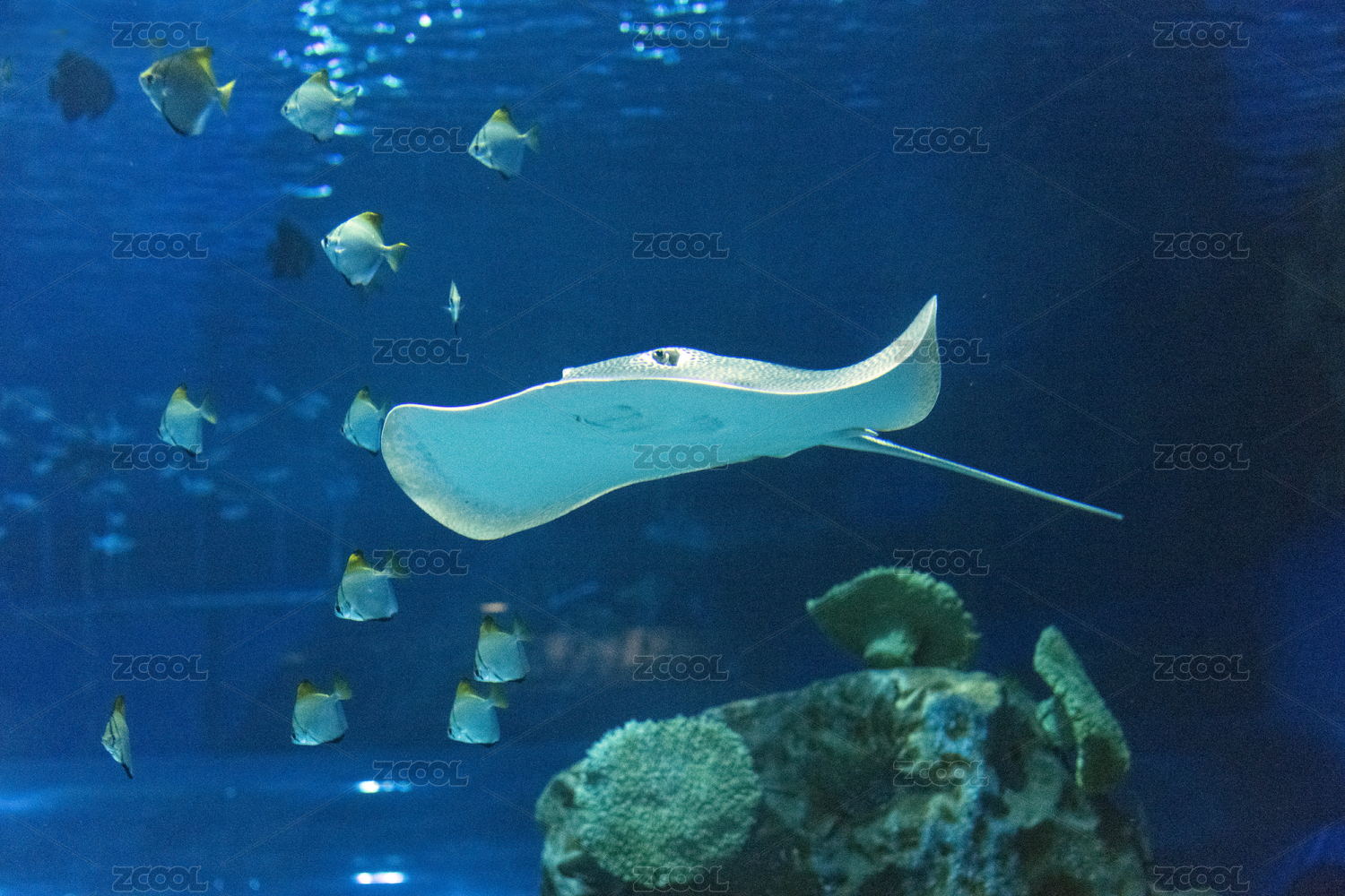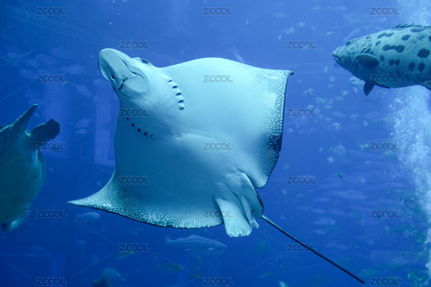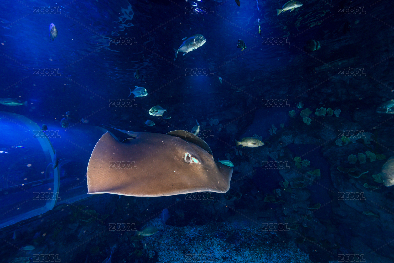 成都极地海洋公园水族箱中正在游泳的蝠鲼