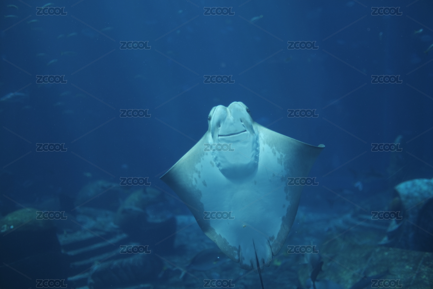 深蓝色的大海中,一条鳐鱼缓缓游过