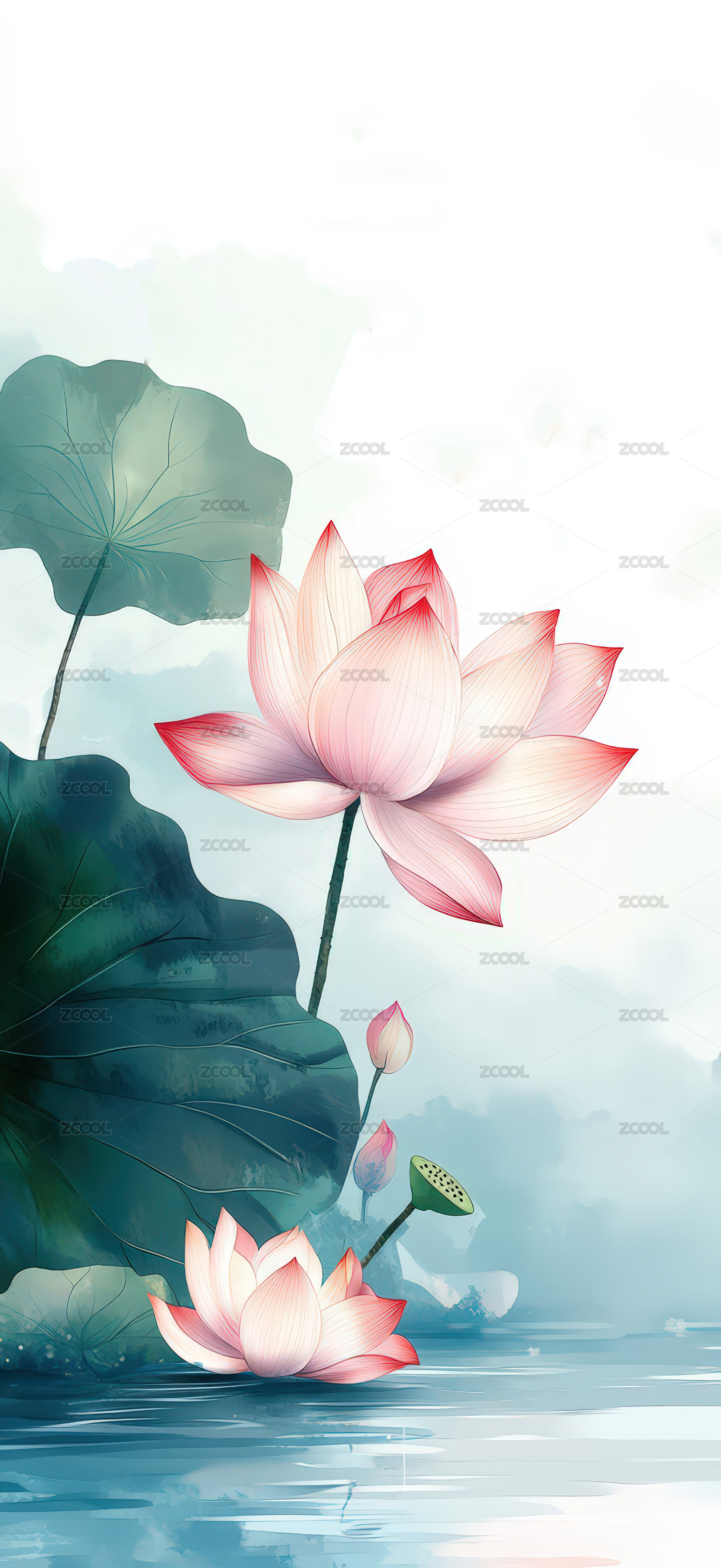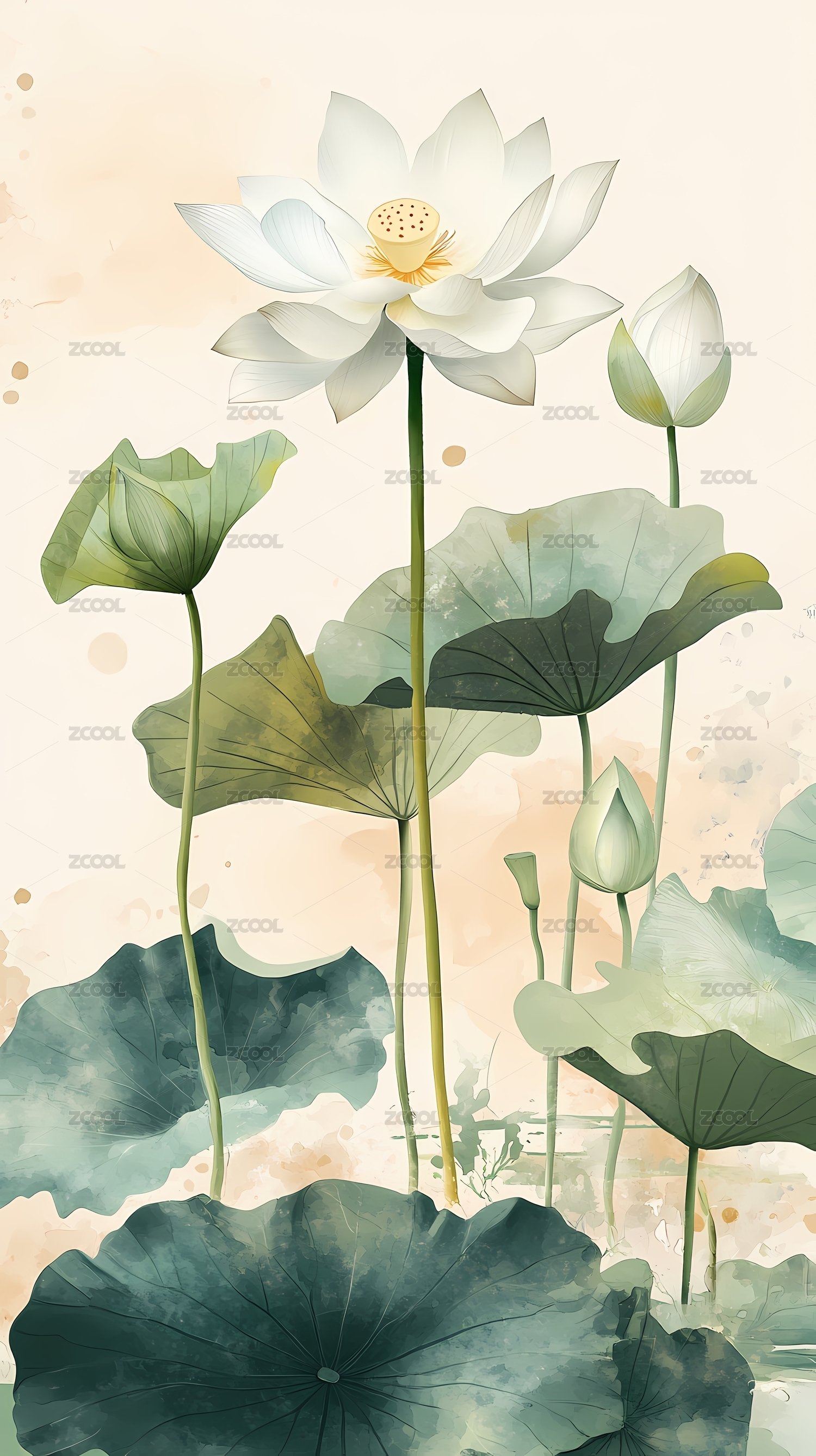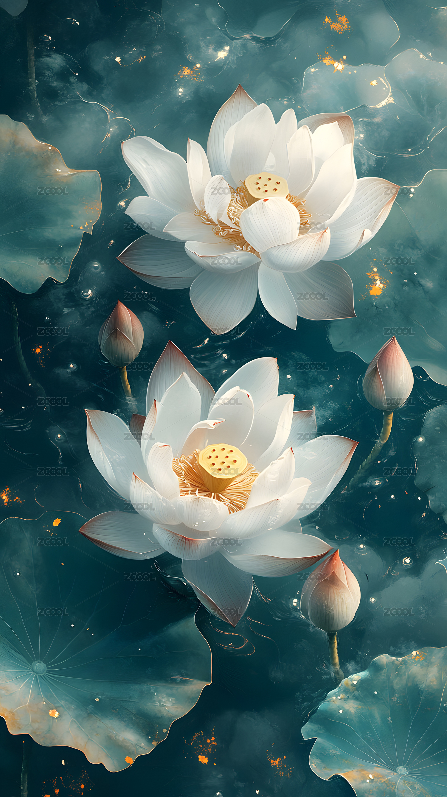 无人,植物,自然美,花,夏天,荷花,叶子,自然,AI数字艺术,特写