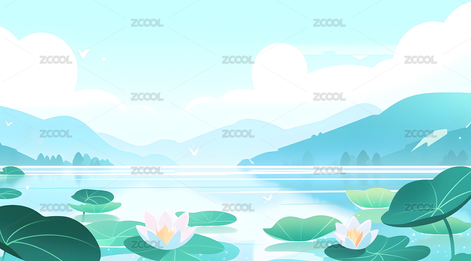 荷花丛清新风山水场景