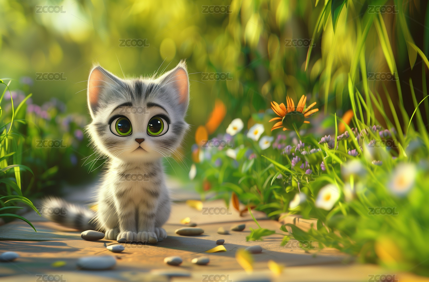 卡通,猫咪,萌宠,小猫,可爱,治愈,宠物,动物,3D,草地