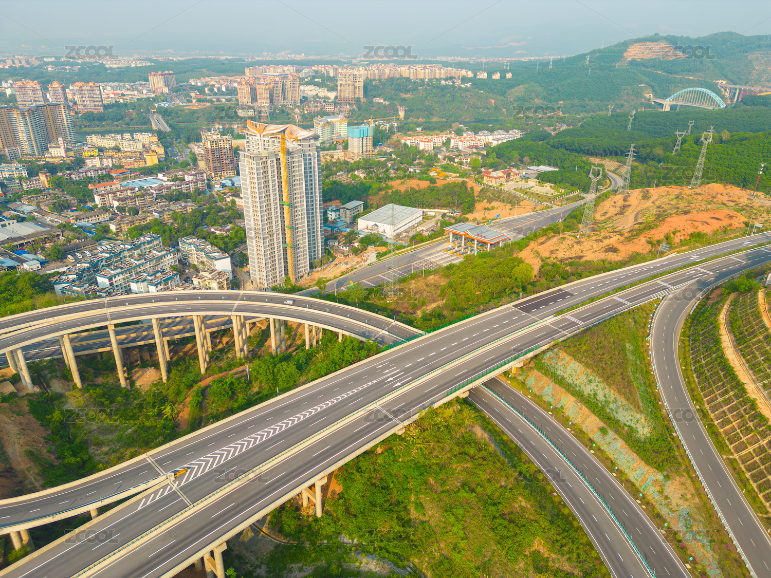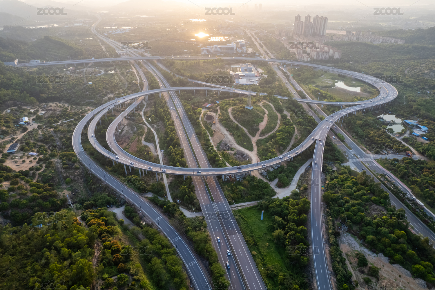 航拍冬季白昼惠州高速公路枢纽交通网络