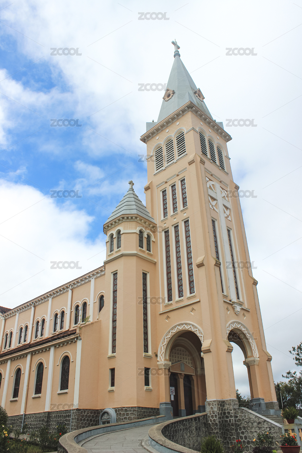 亚洲,东南亚,越南,大叻,教堂,哥特式风格,钟楼,粉色,白天,宗教
