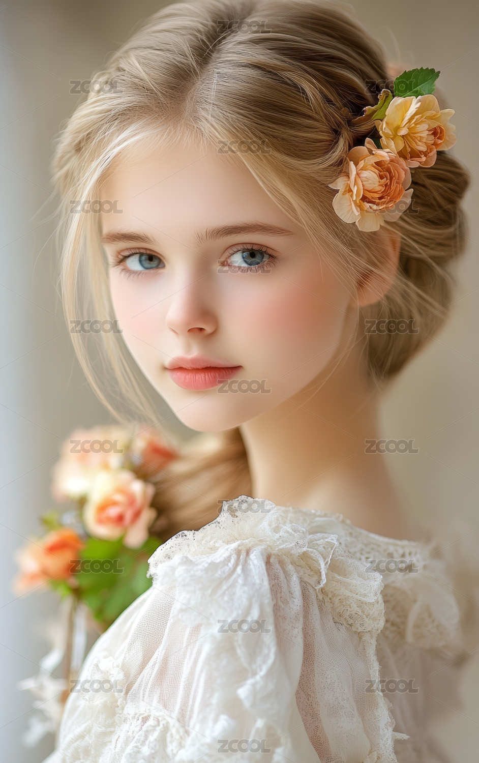 粽发玫瑰女孩浪漫唯美动漫海报油画壁纸