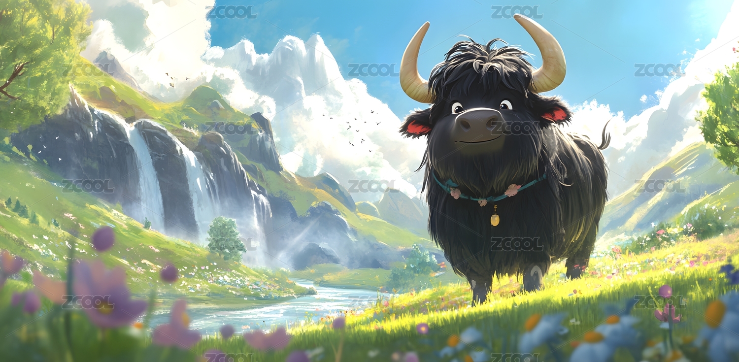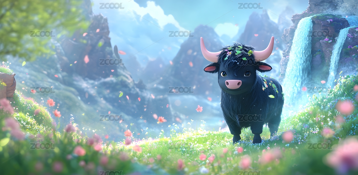 春天野外的一头牛