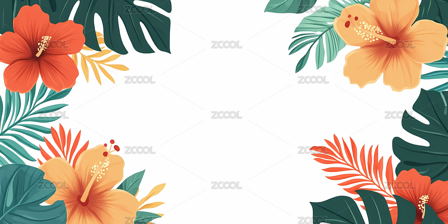 热带花卉与绿叶装饰边框