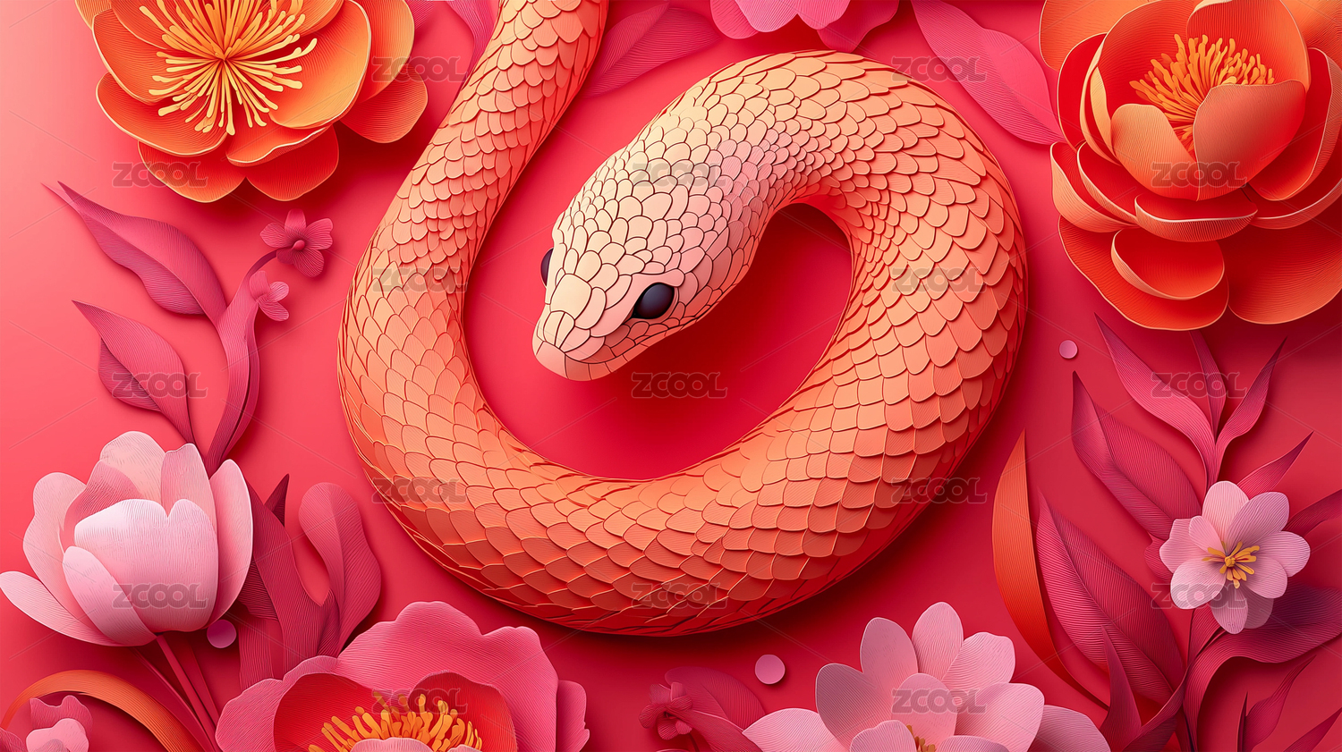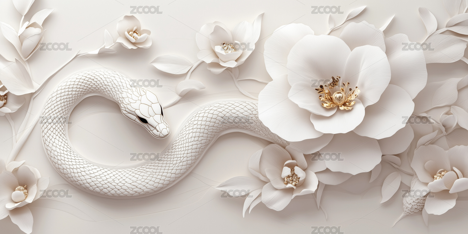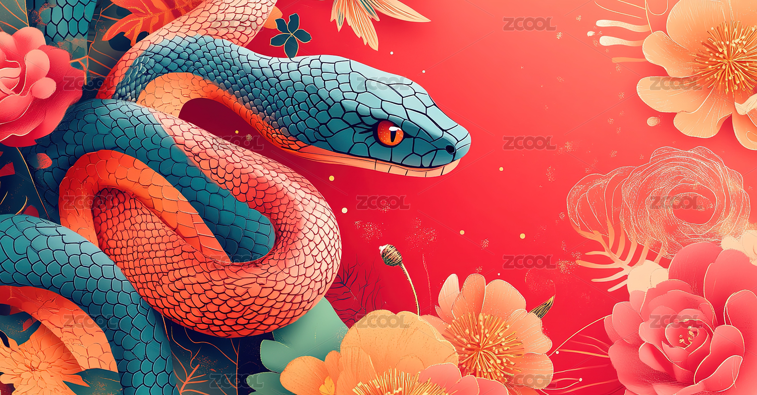 2025年贺年蛇与花的和谐美背景