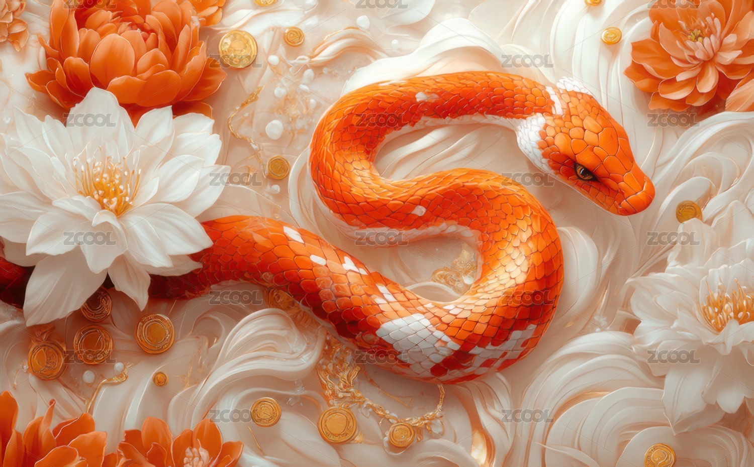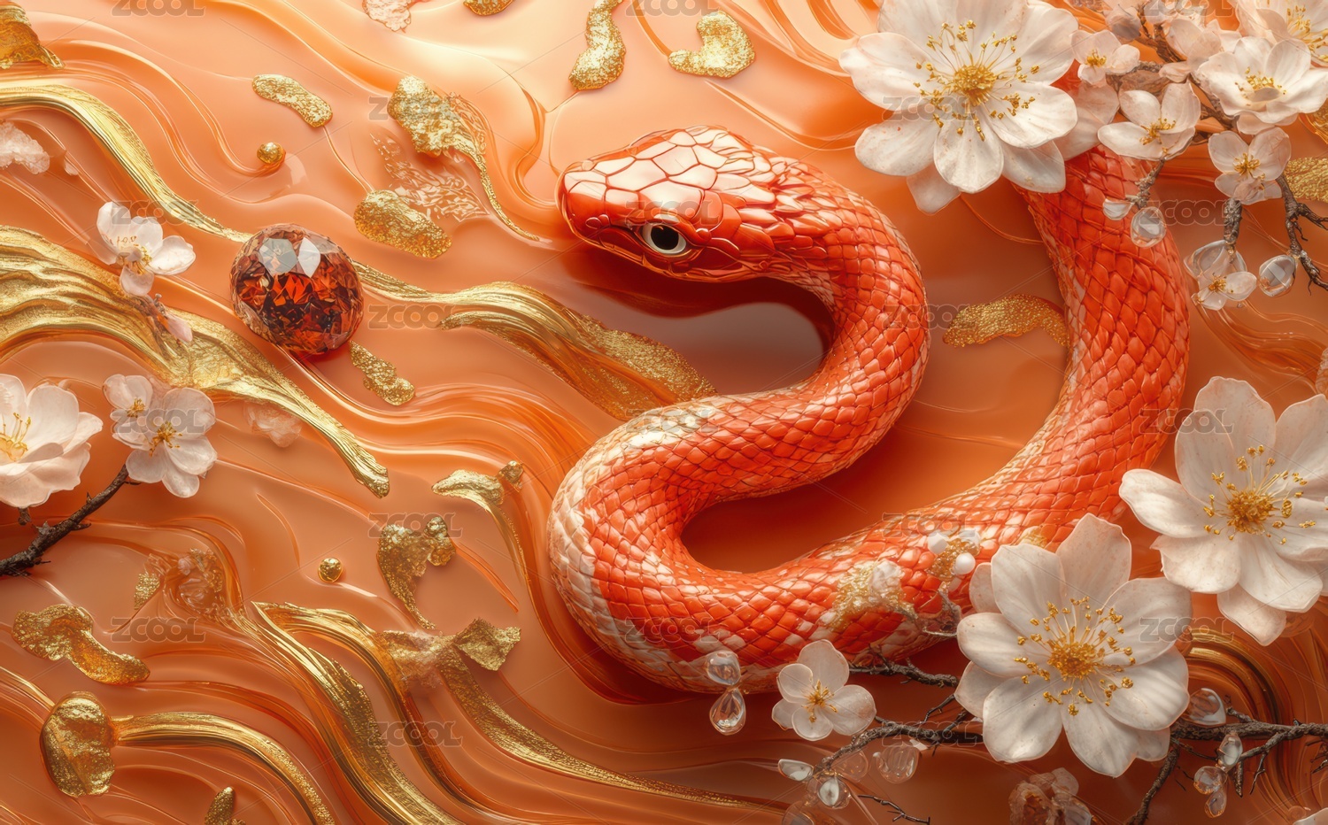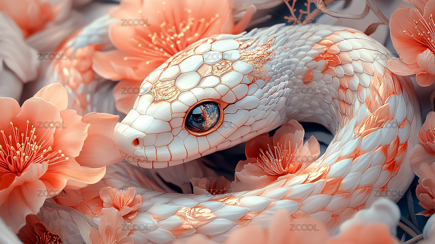 2025年贺年蛇与花的和谐美背景