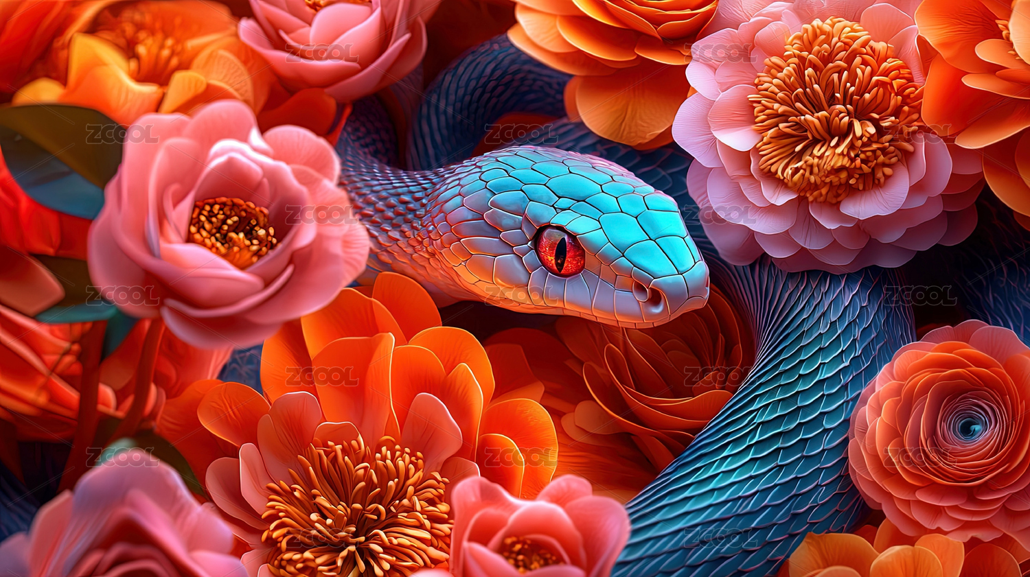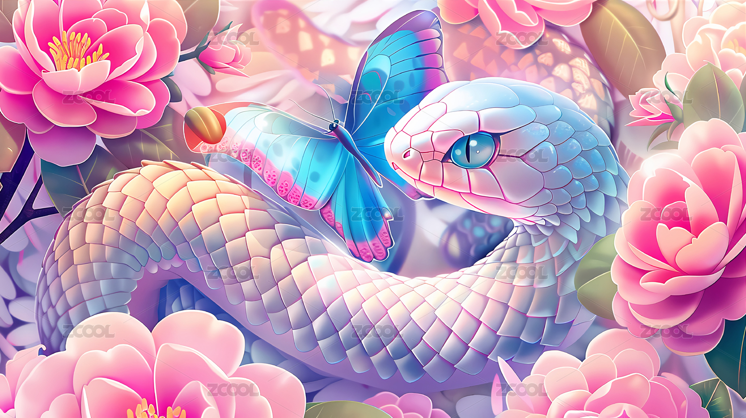 梦幻蓝蛇与粉牡丹