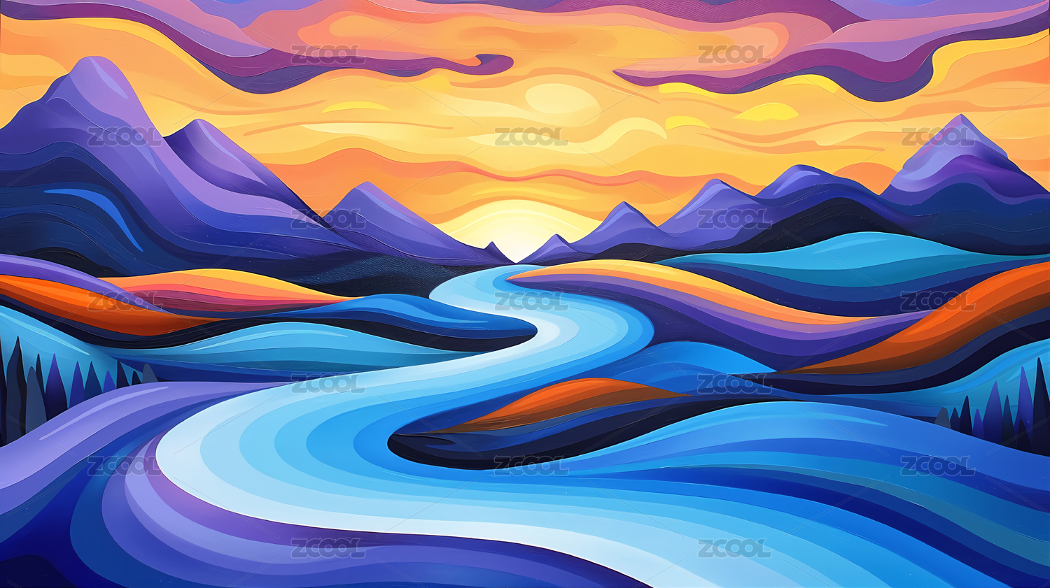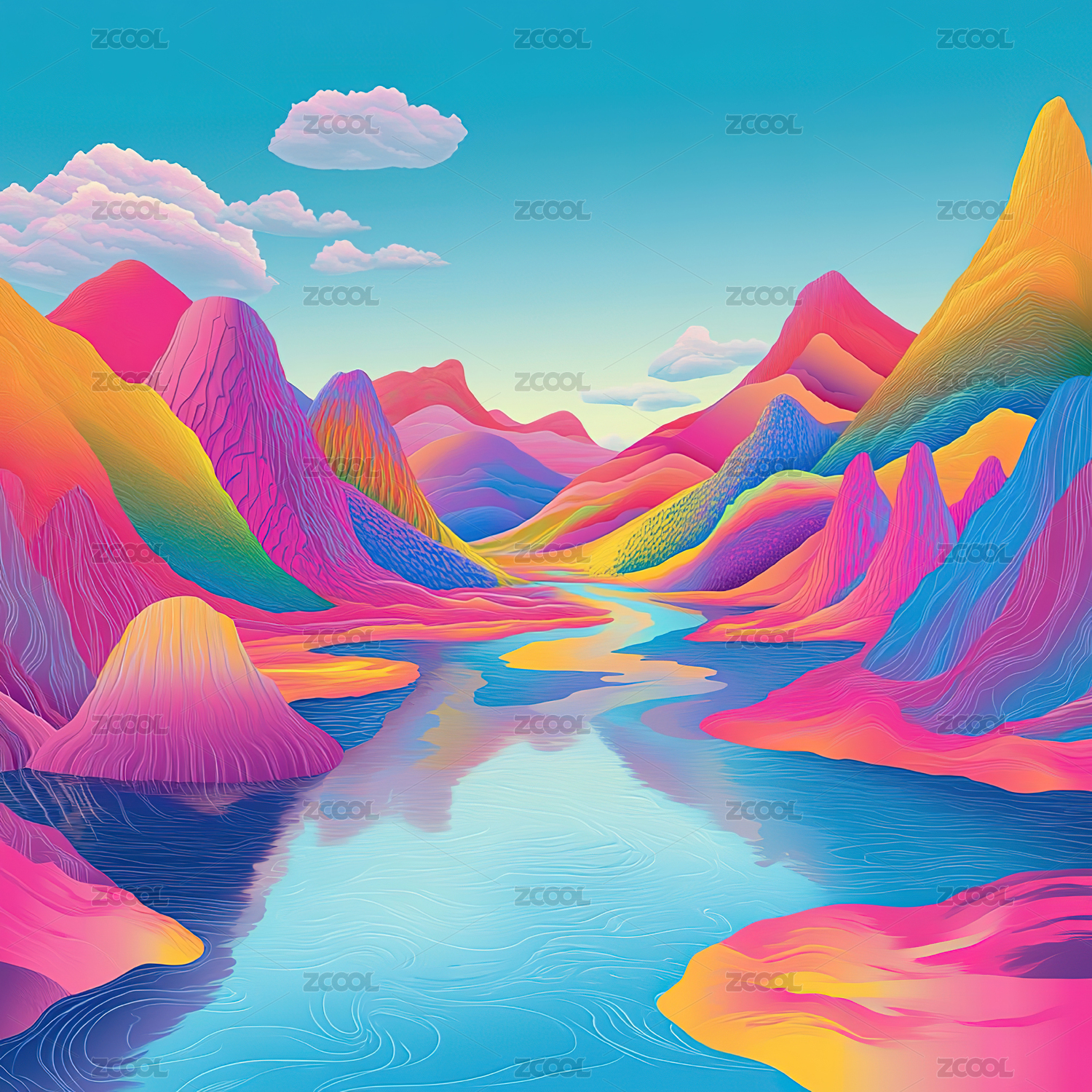 AI数字艺术,自然,风景,高山,插画,天空,云,艺术,背景,户外