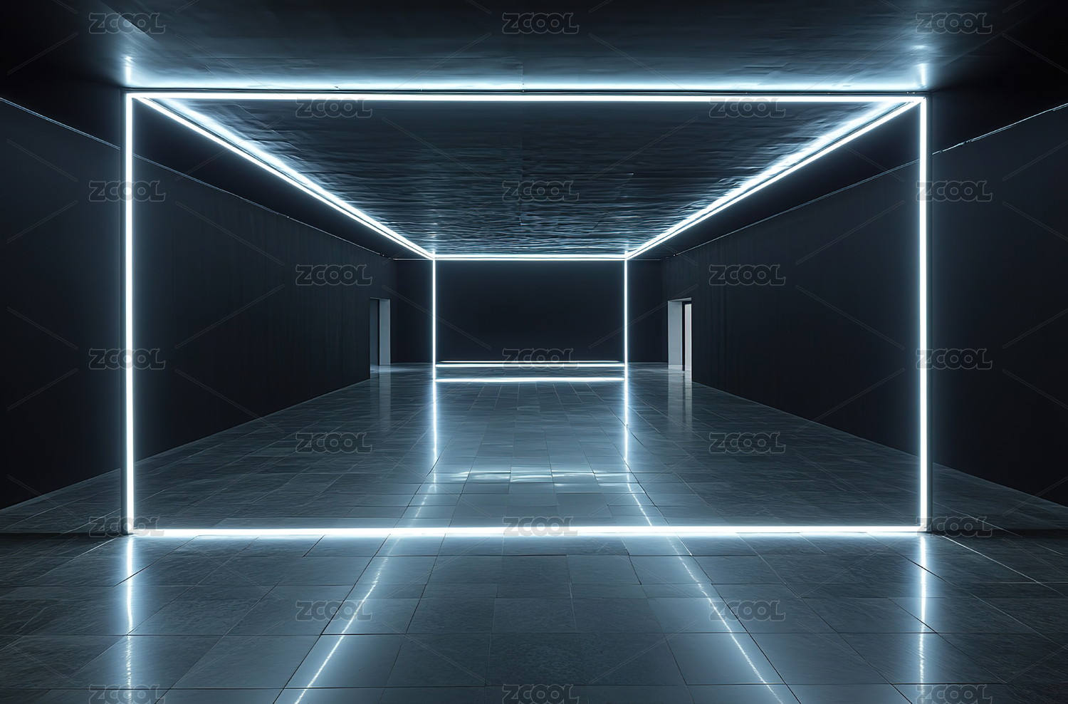 蓝光交汇的空旷空间