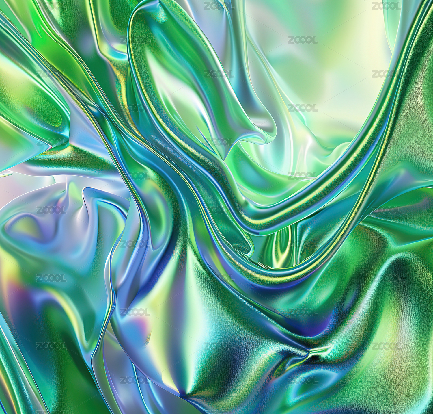 时尚波纹动感高档绿色混色流体渐变抽象背景