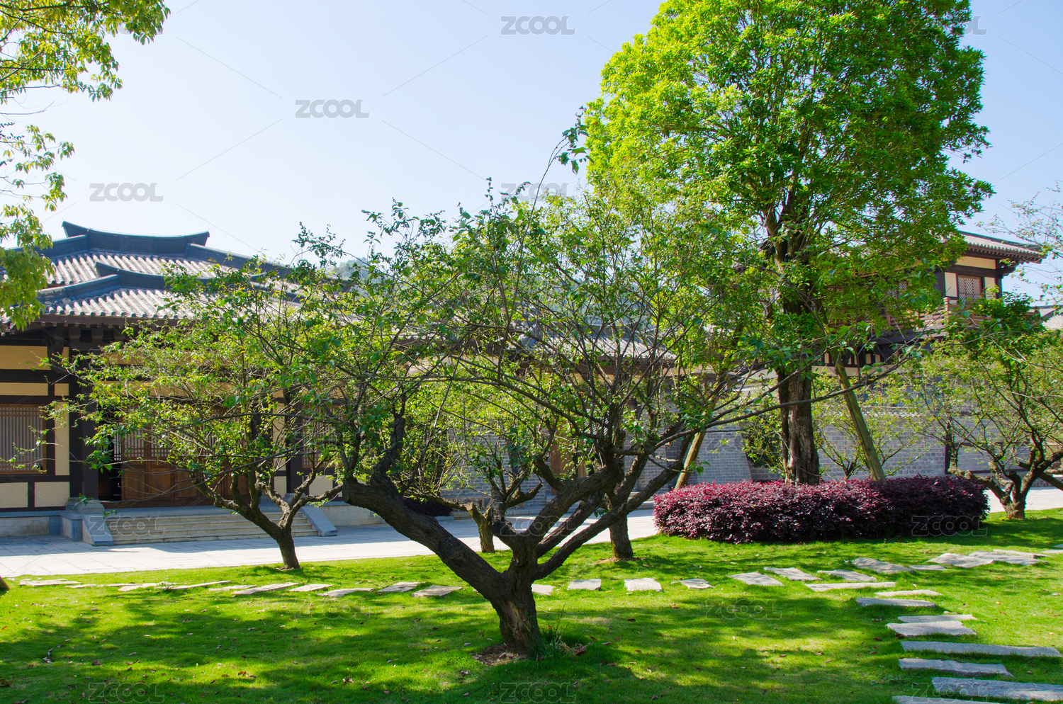 秋天中国扬州唐城遗址的崔致远纪念馆
