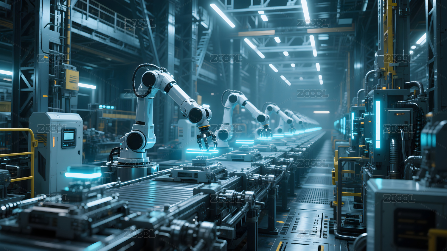 工厂,流水线,汽车机器人,车间,汽车生产,汽车车身,AIGC,汽车检验,灯光,明亮