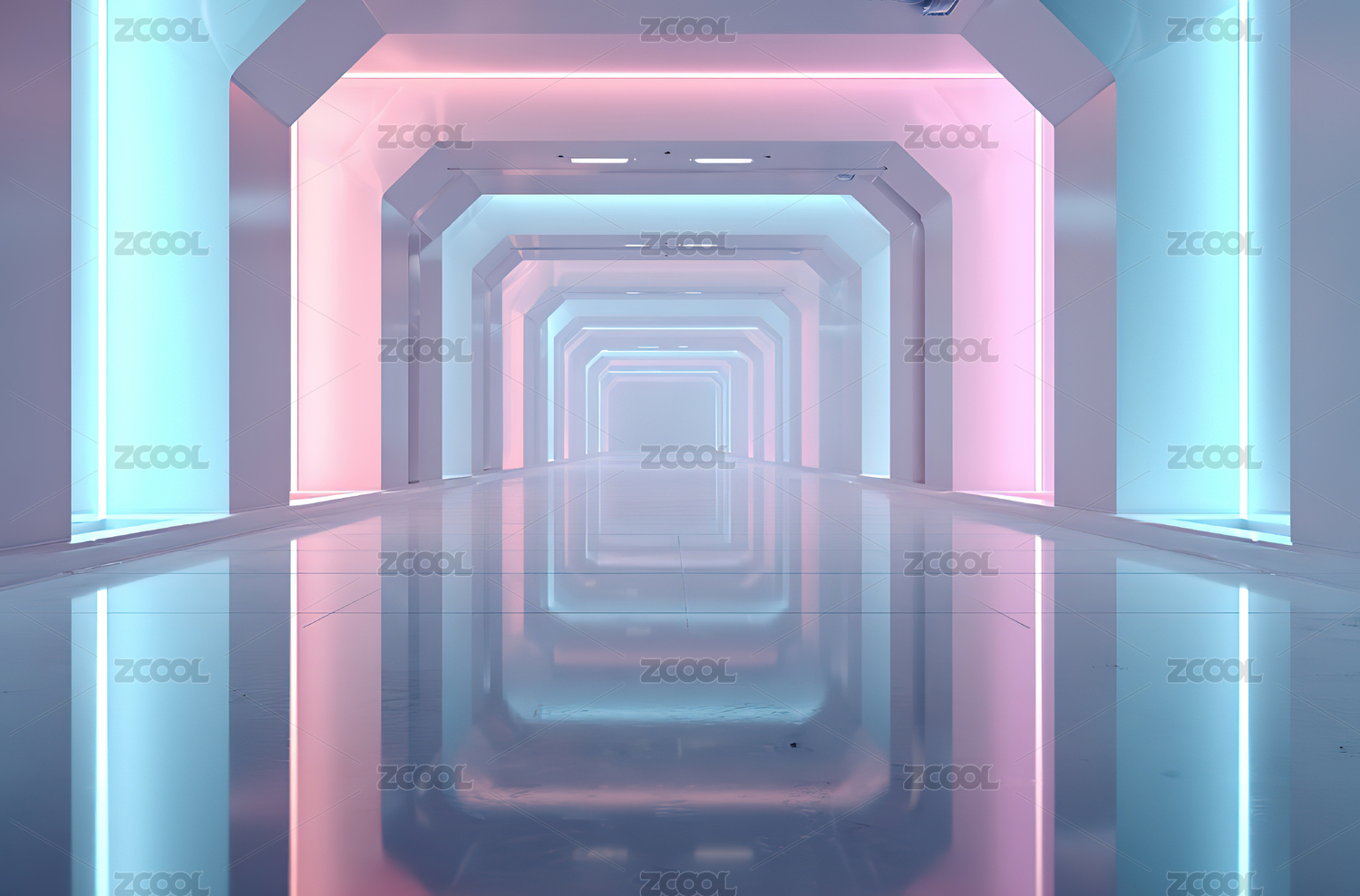 3D渲染科幻几何隧道霓虹灯线概念插图