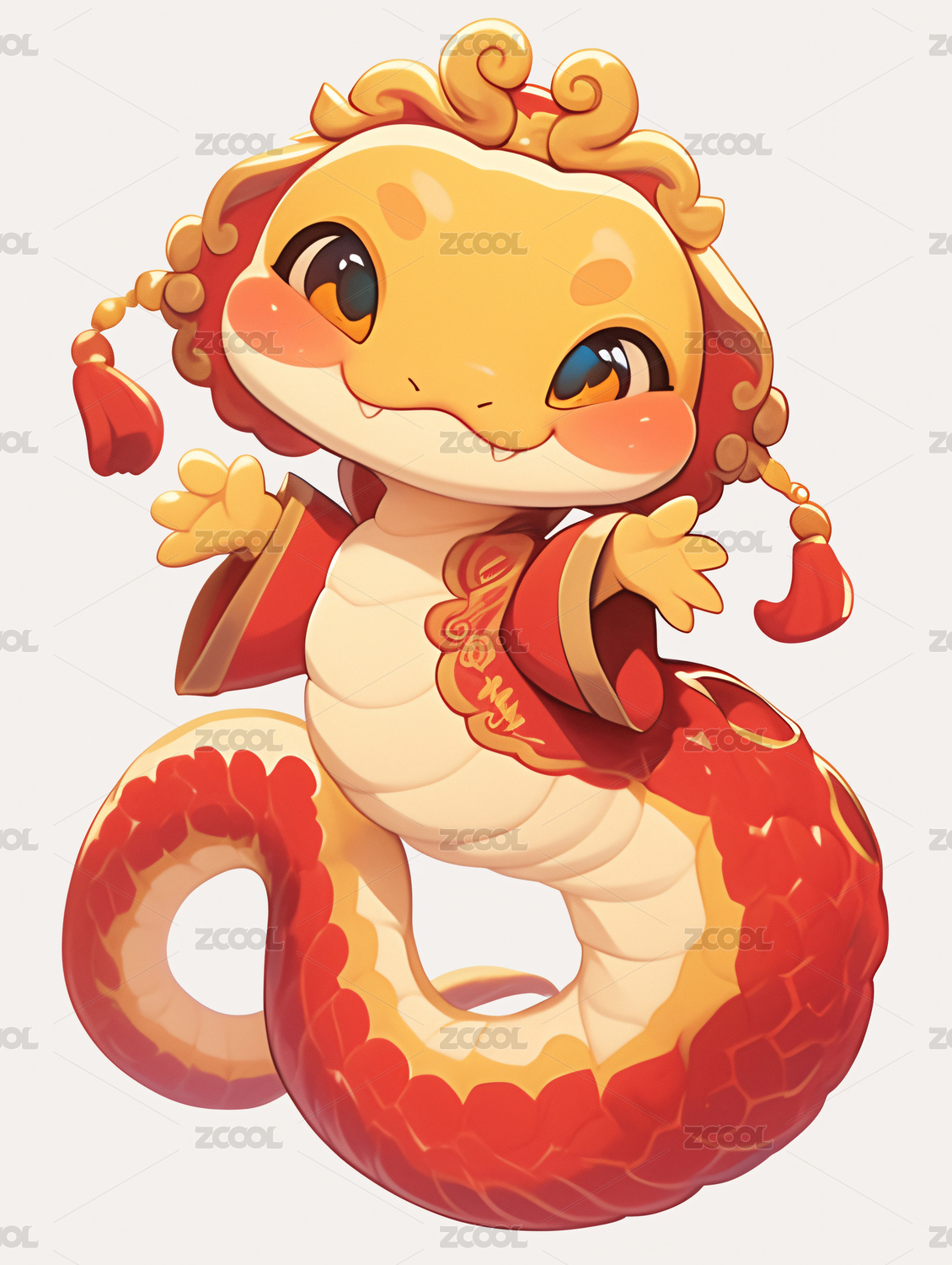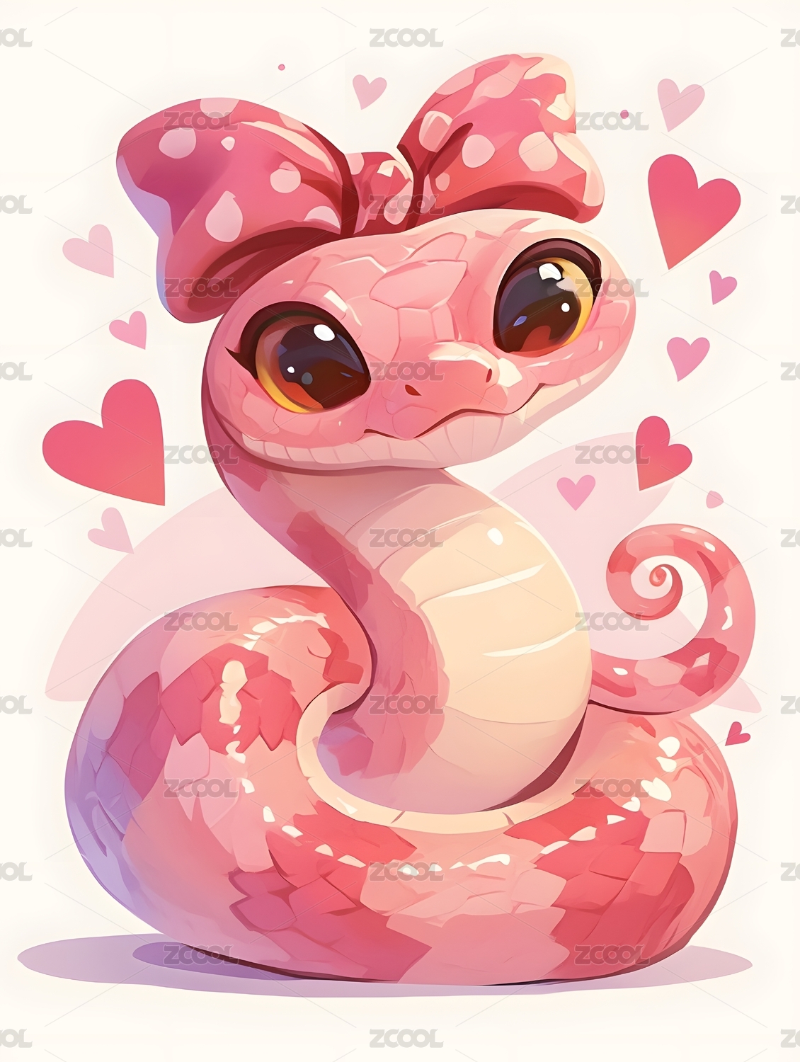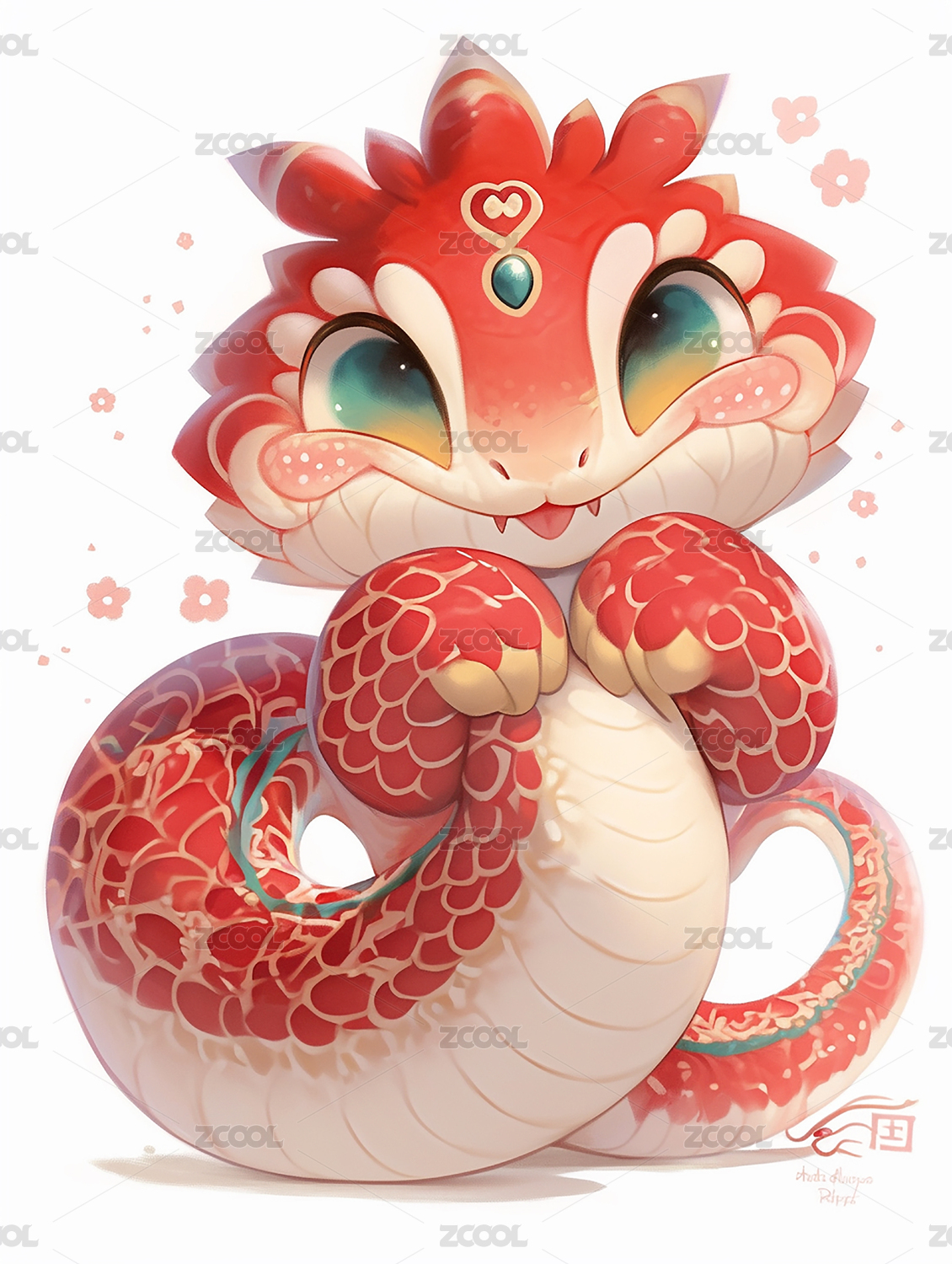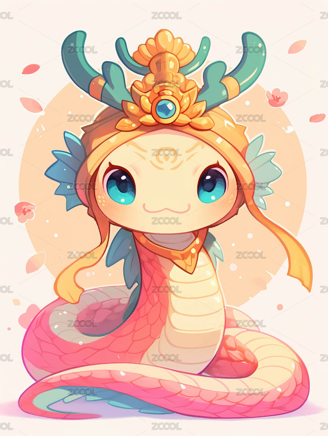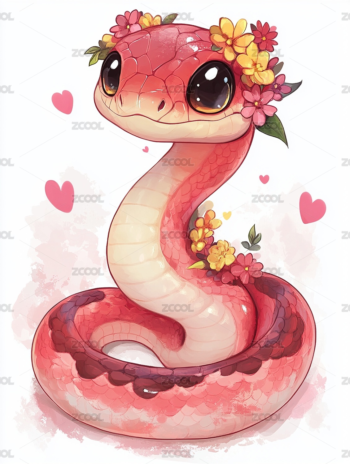 可爱开心的中国风花朵装饰卡通生肖蛇