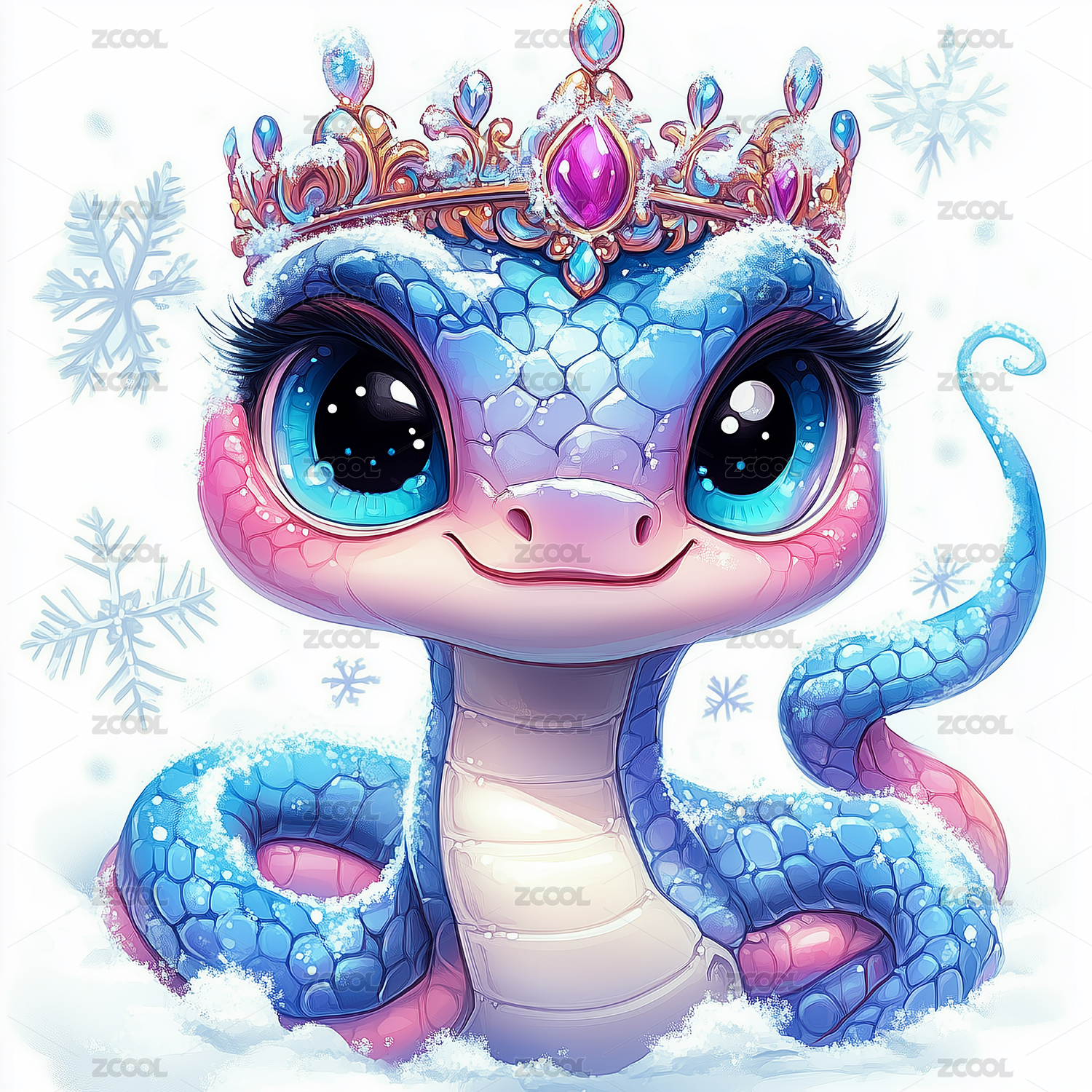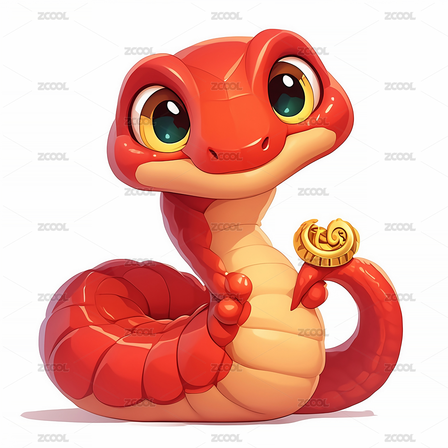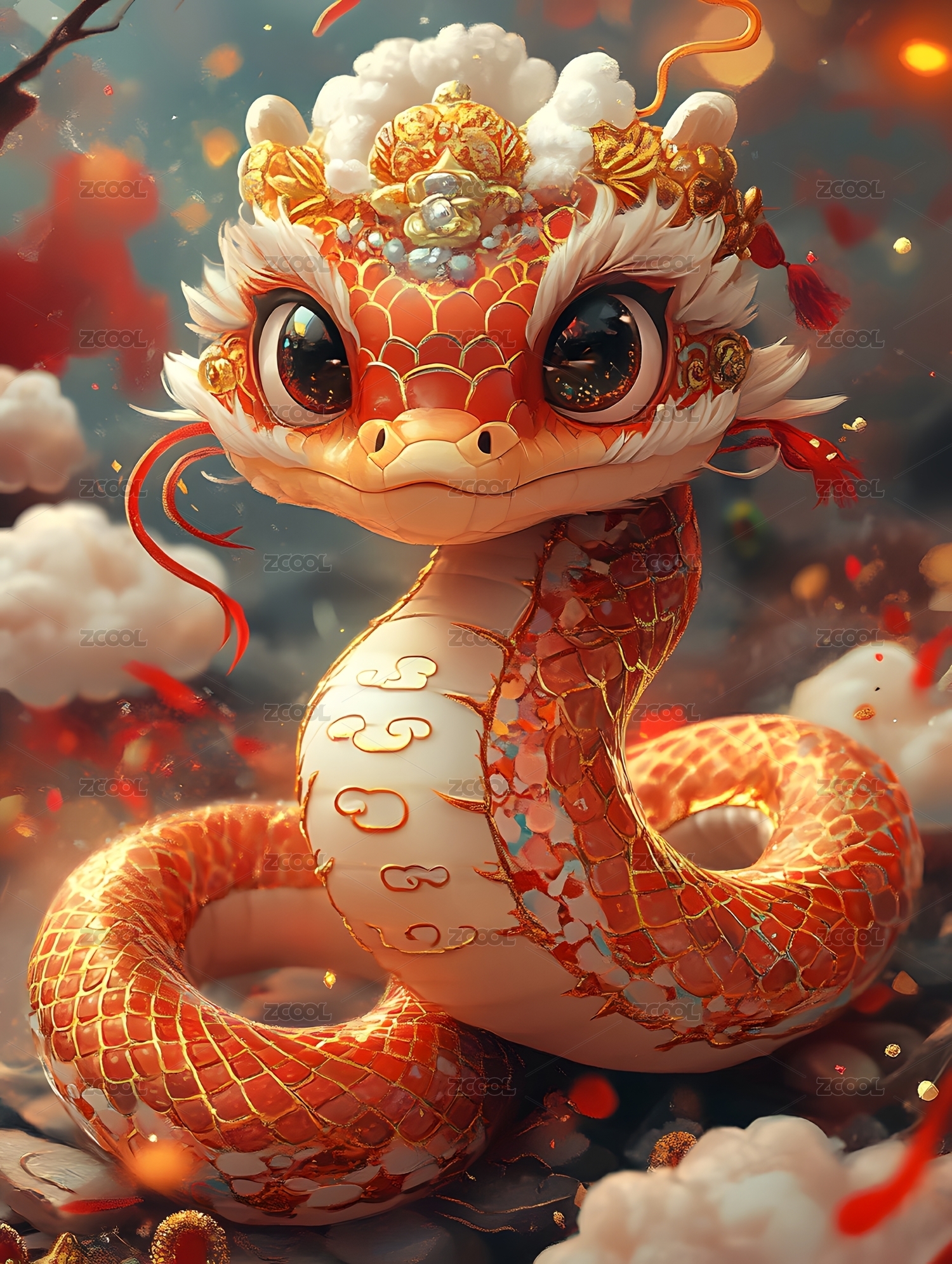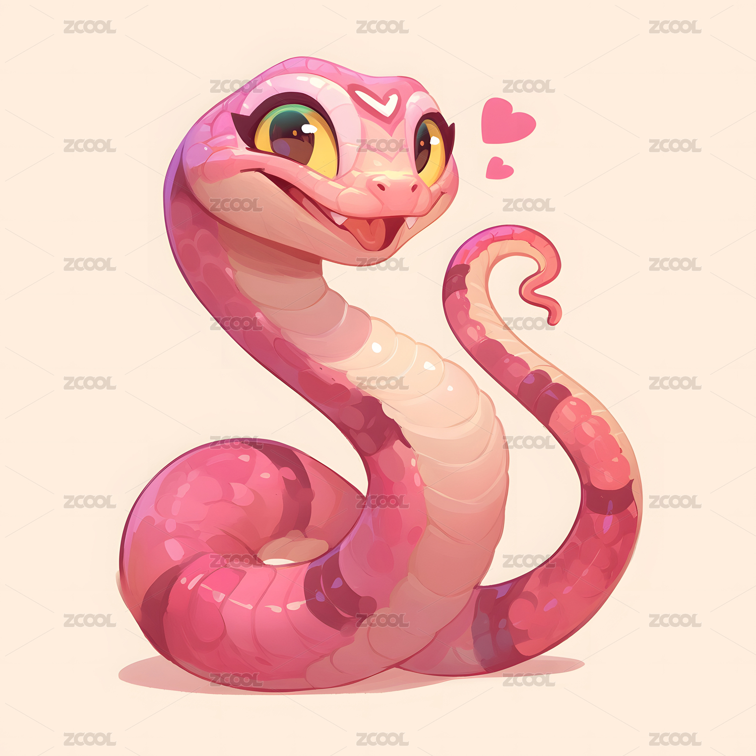 可爱开心的中国风花朵装饰卡通生肖蛇