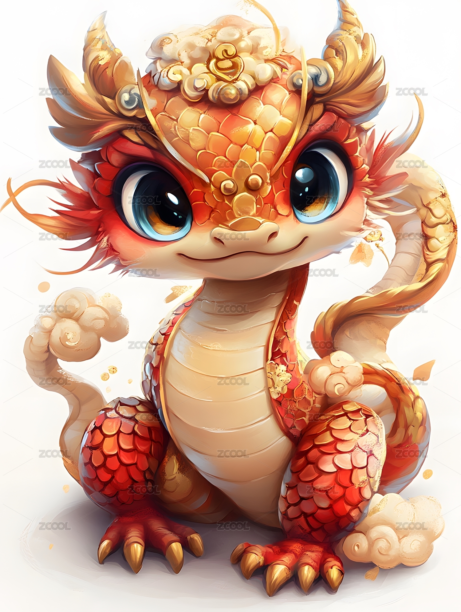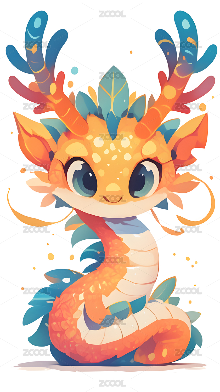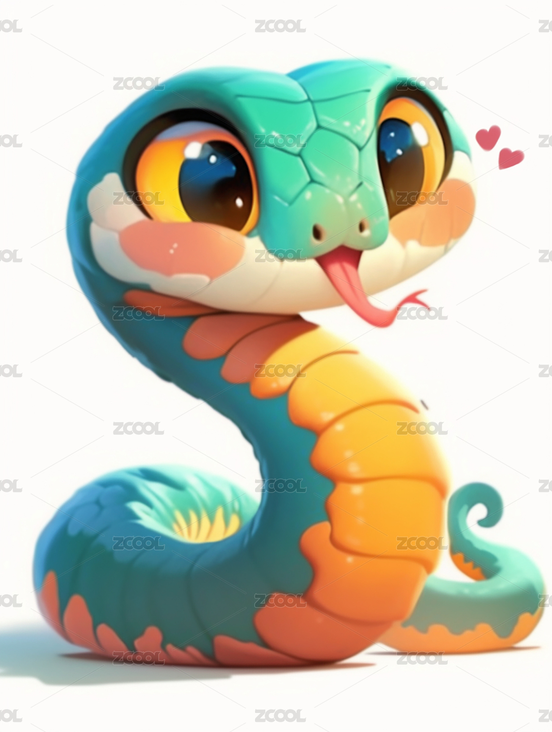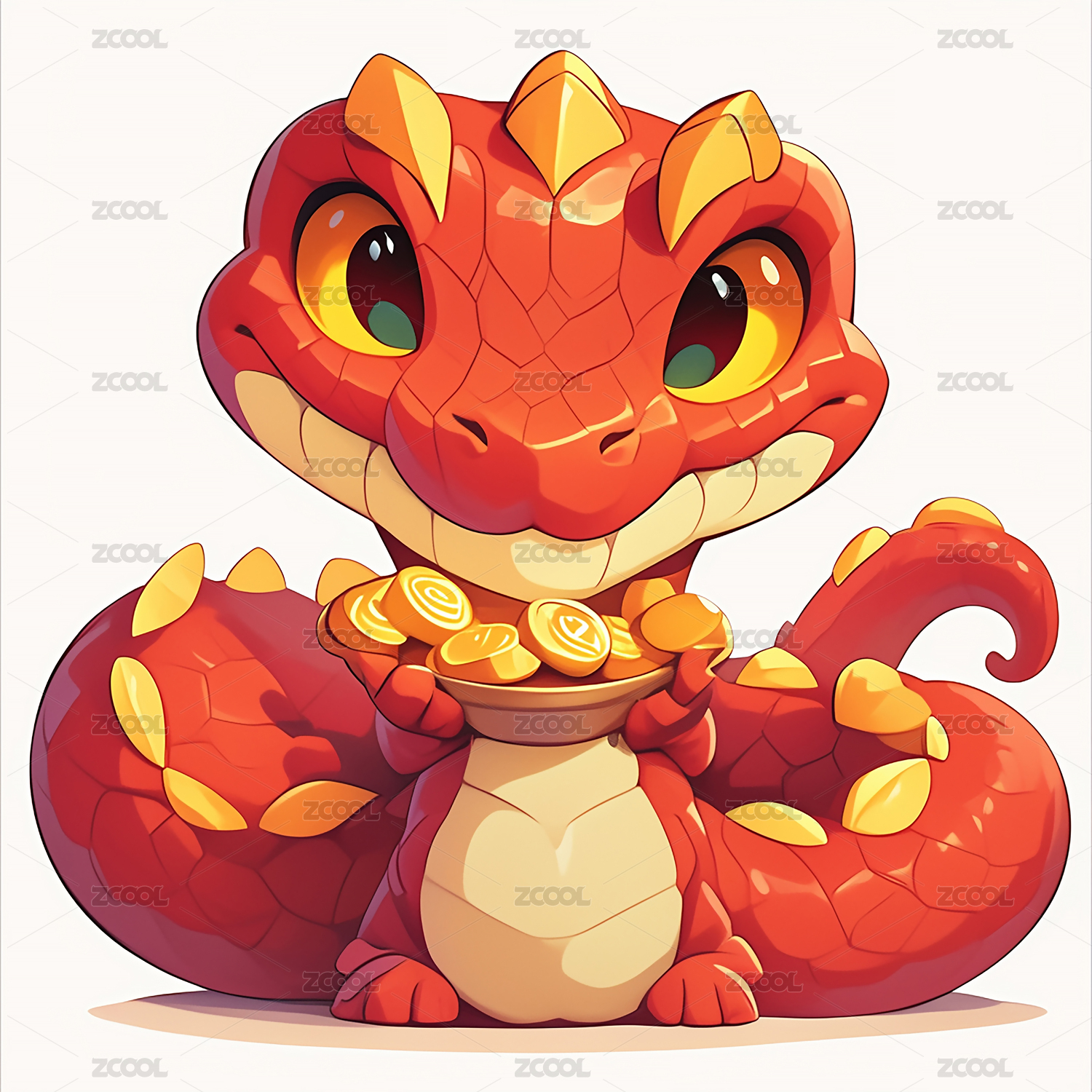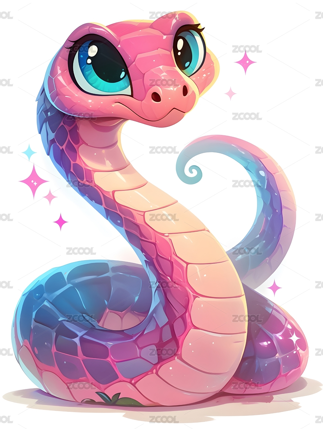 可爱开心的中国风花朵装饰卡通生肖蛇