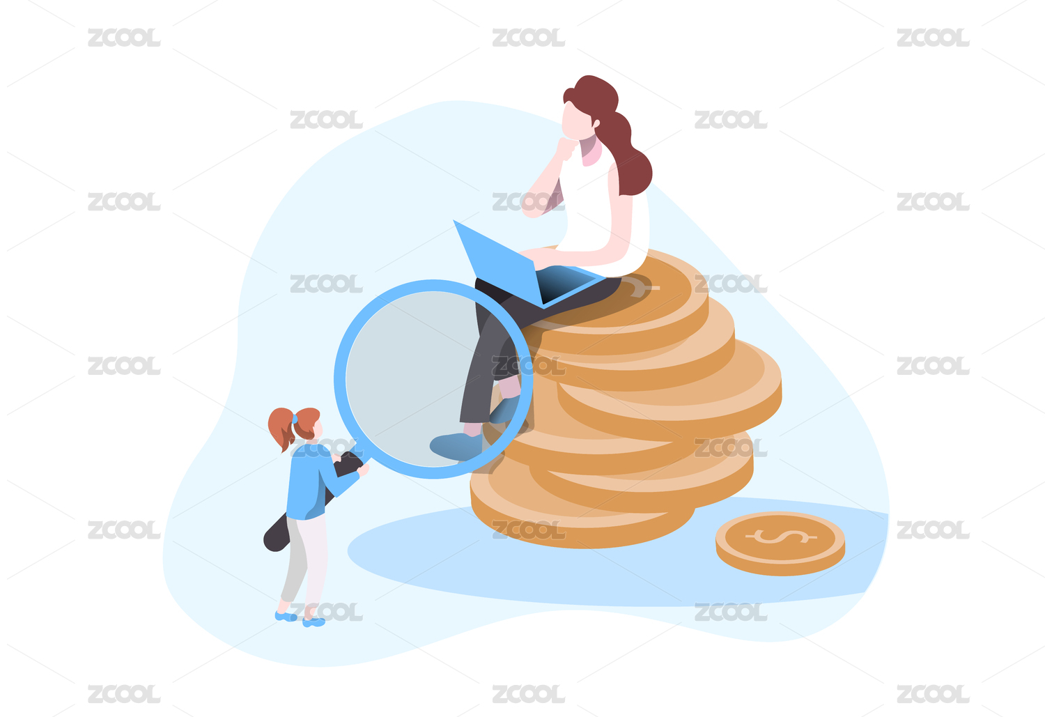 金融顾问女专家,扁平矢量人物场景创意概念插画