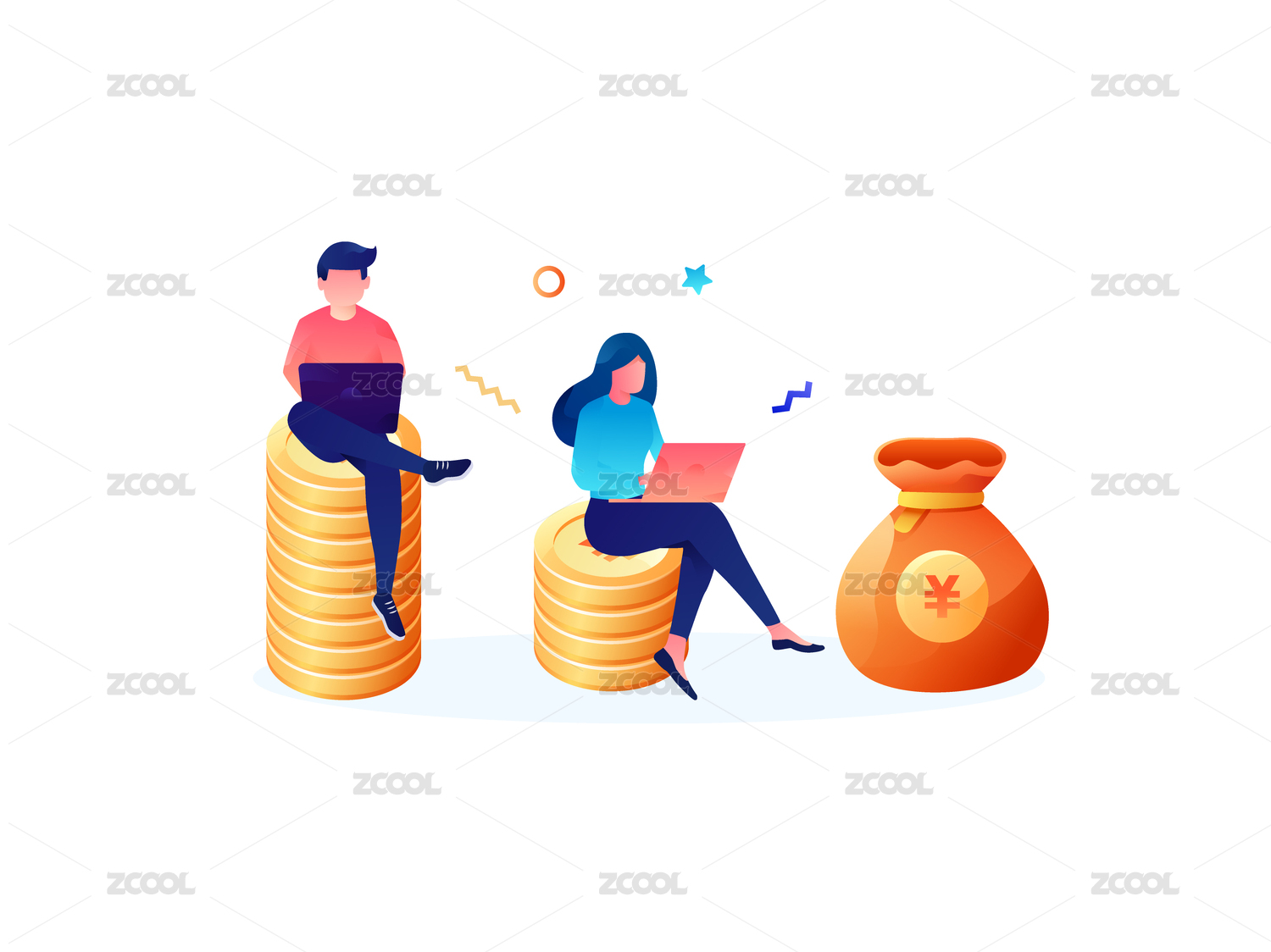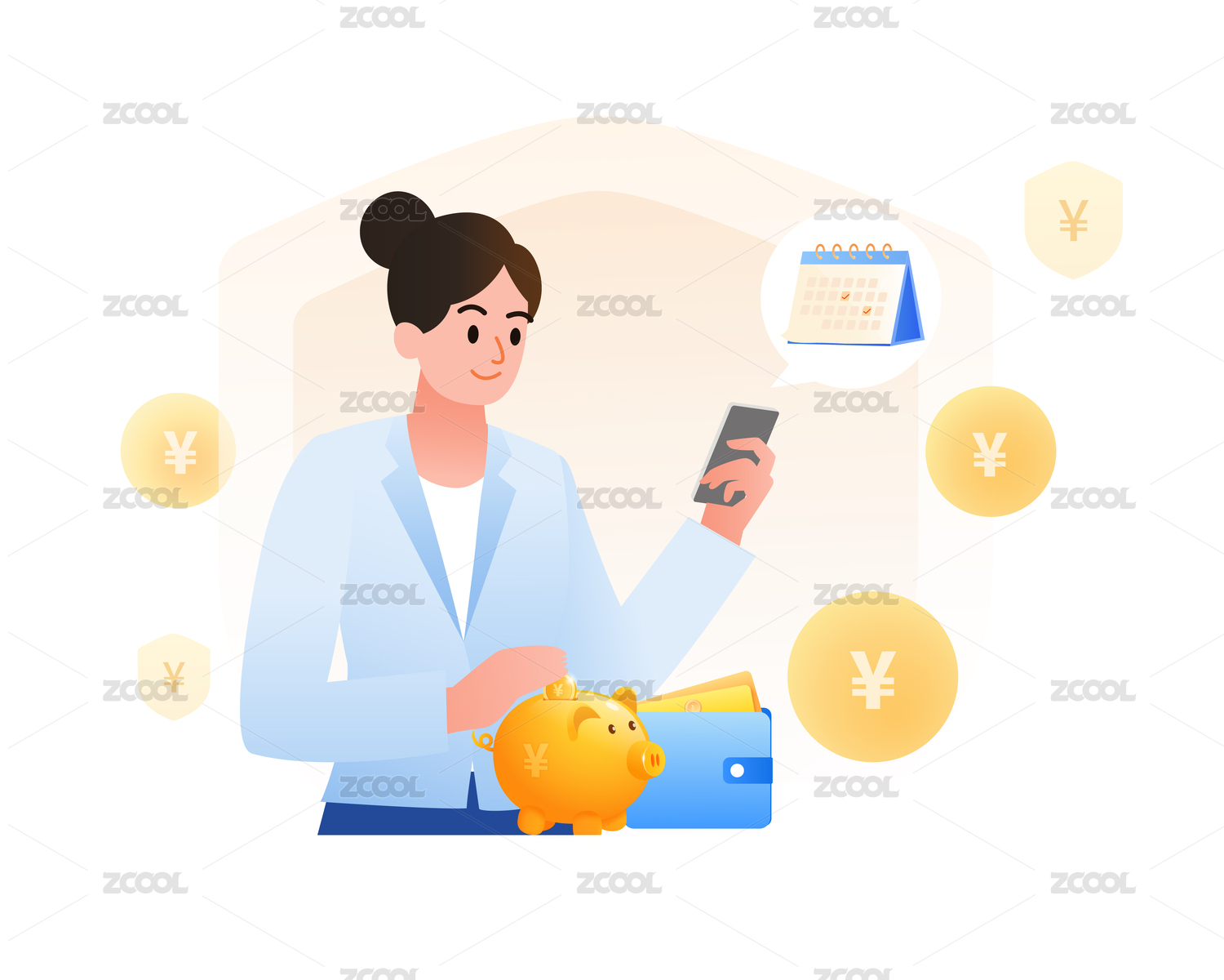 储蓄,存钱,理财,金币,钱包,插画,简洁,女人,零钱