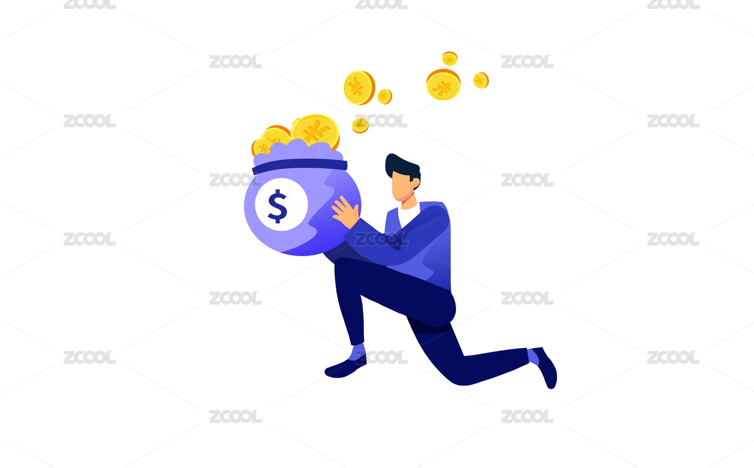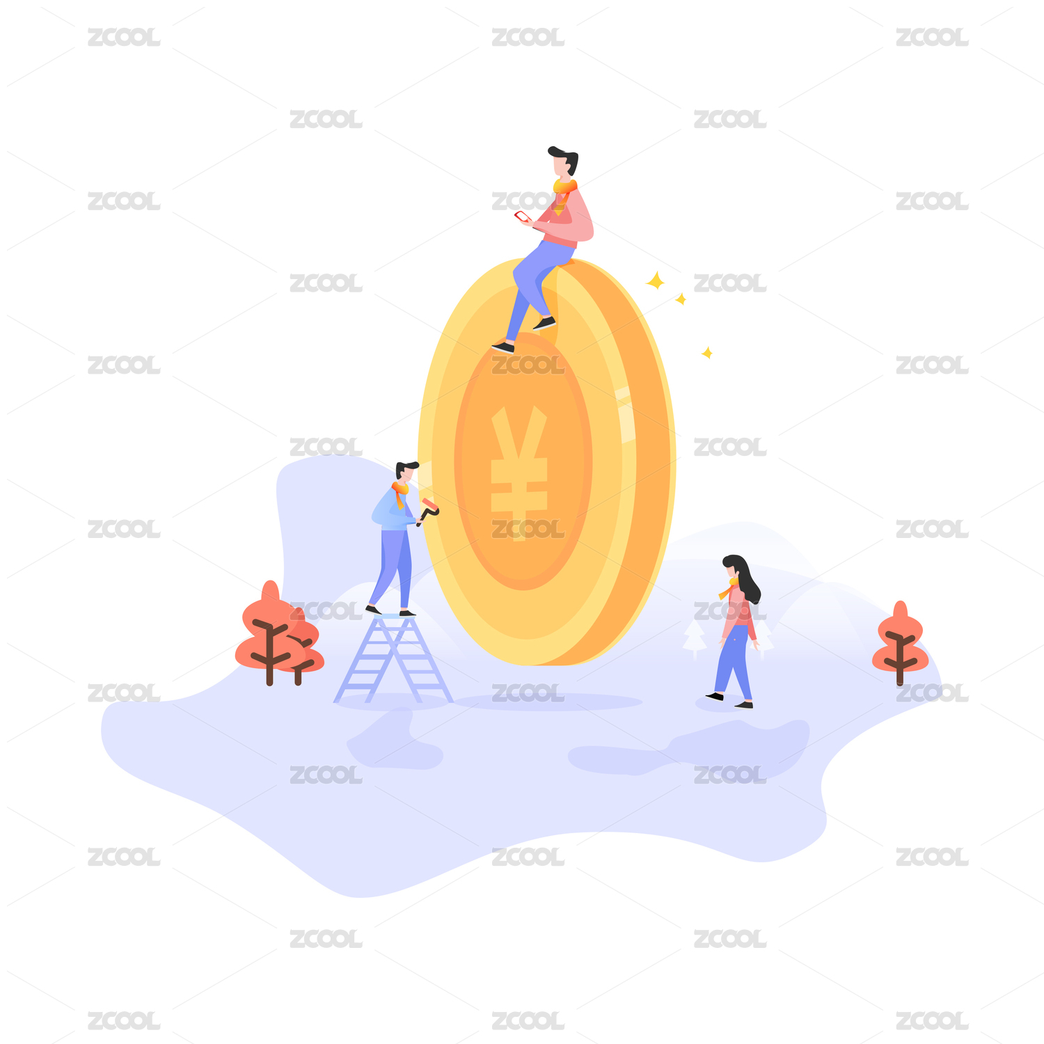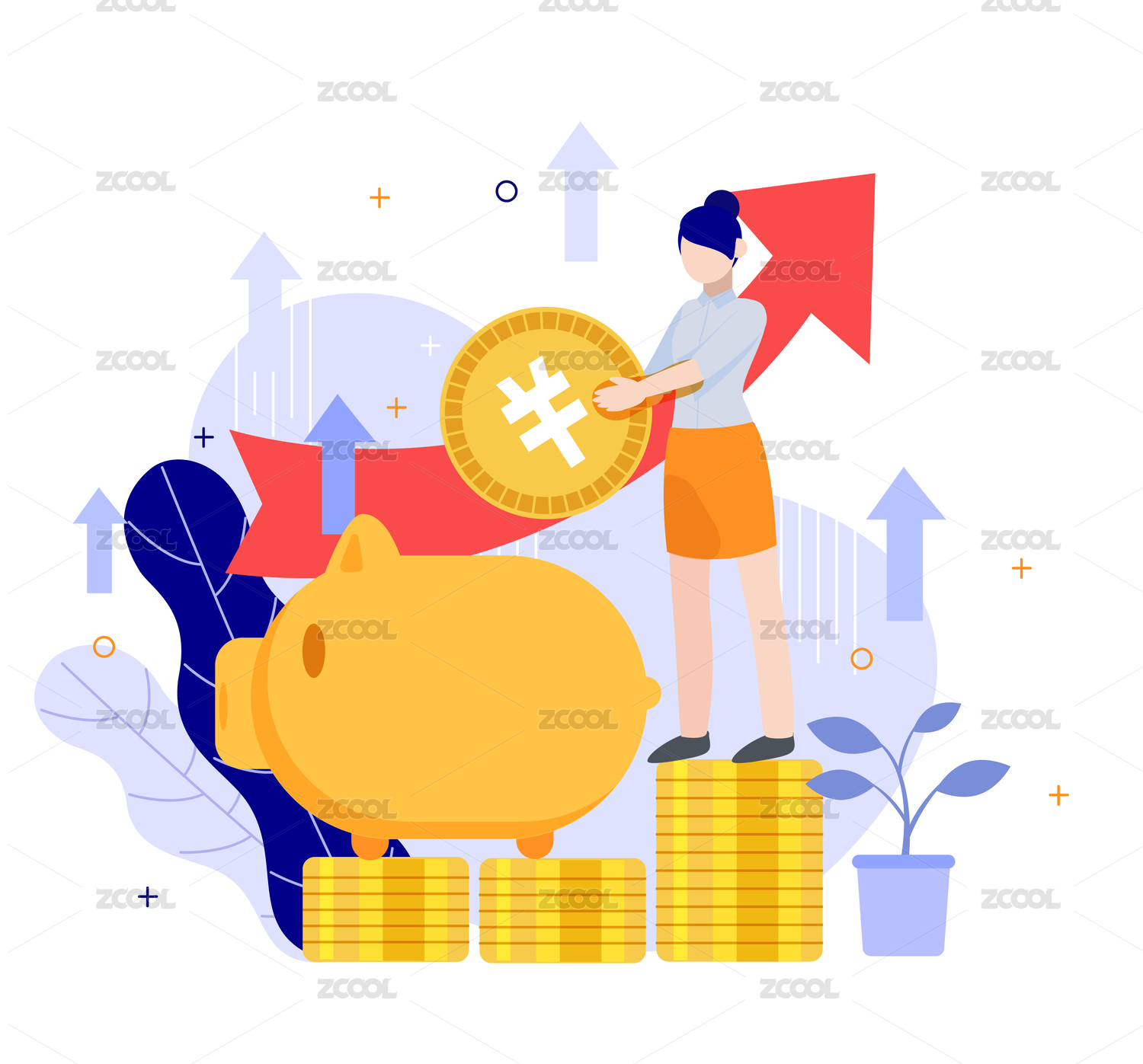 扁平化矢量金融金币人物插画