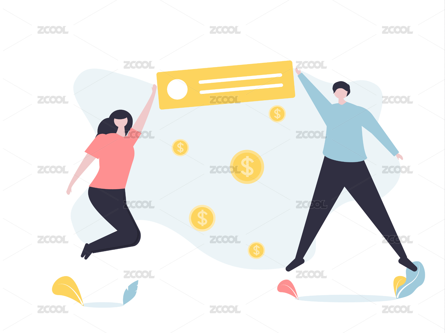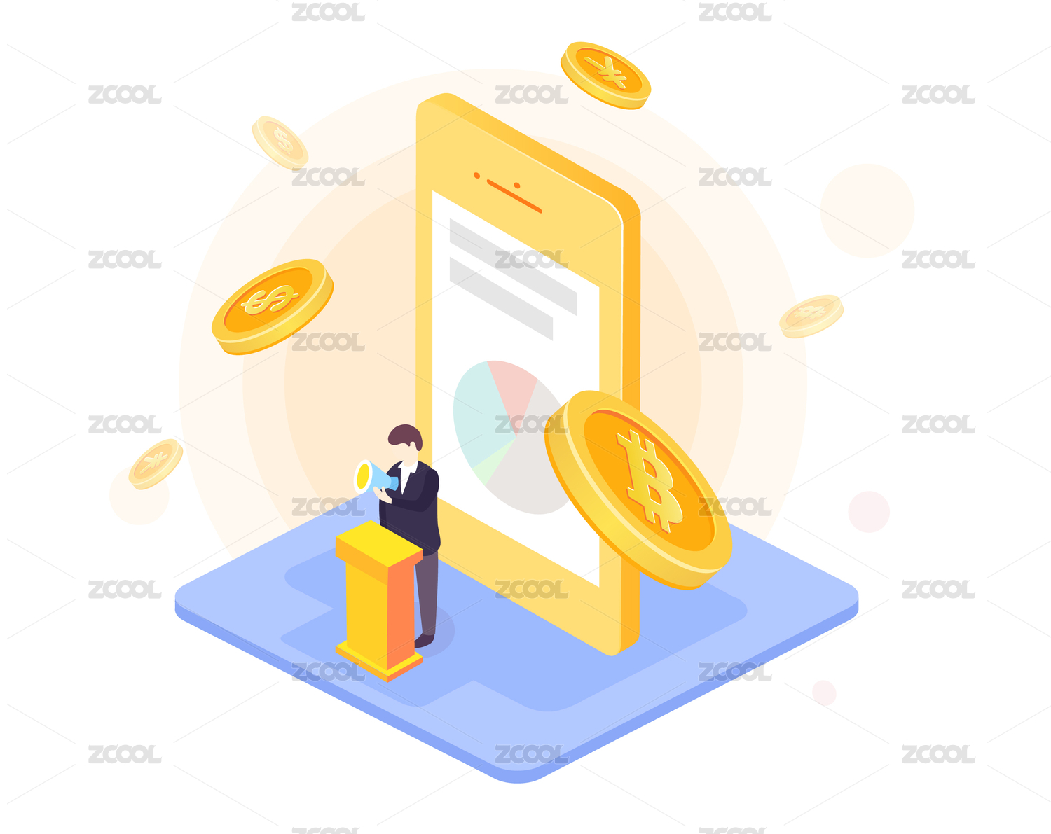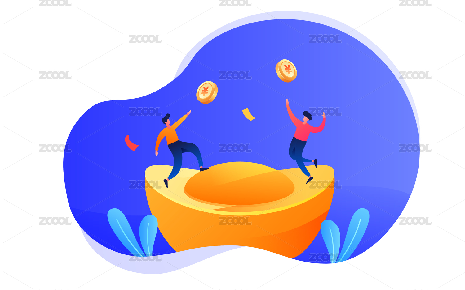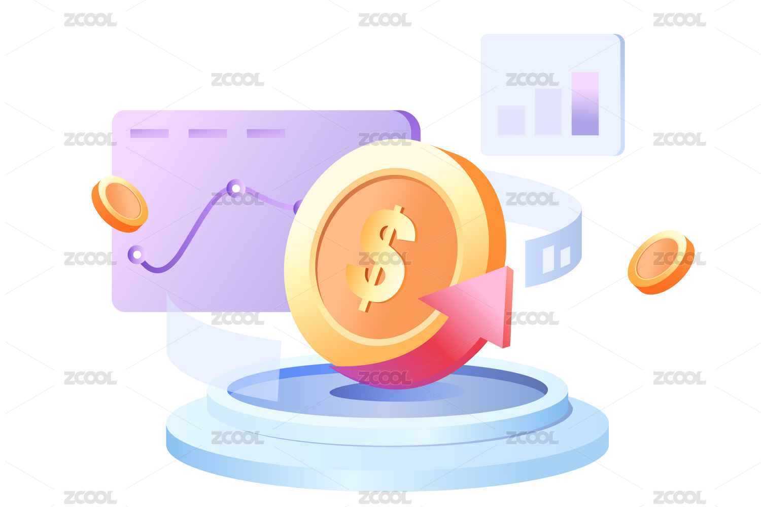 扁平化矢量金融金币人物插画