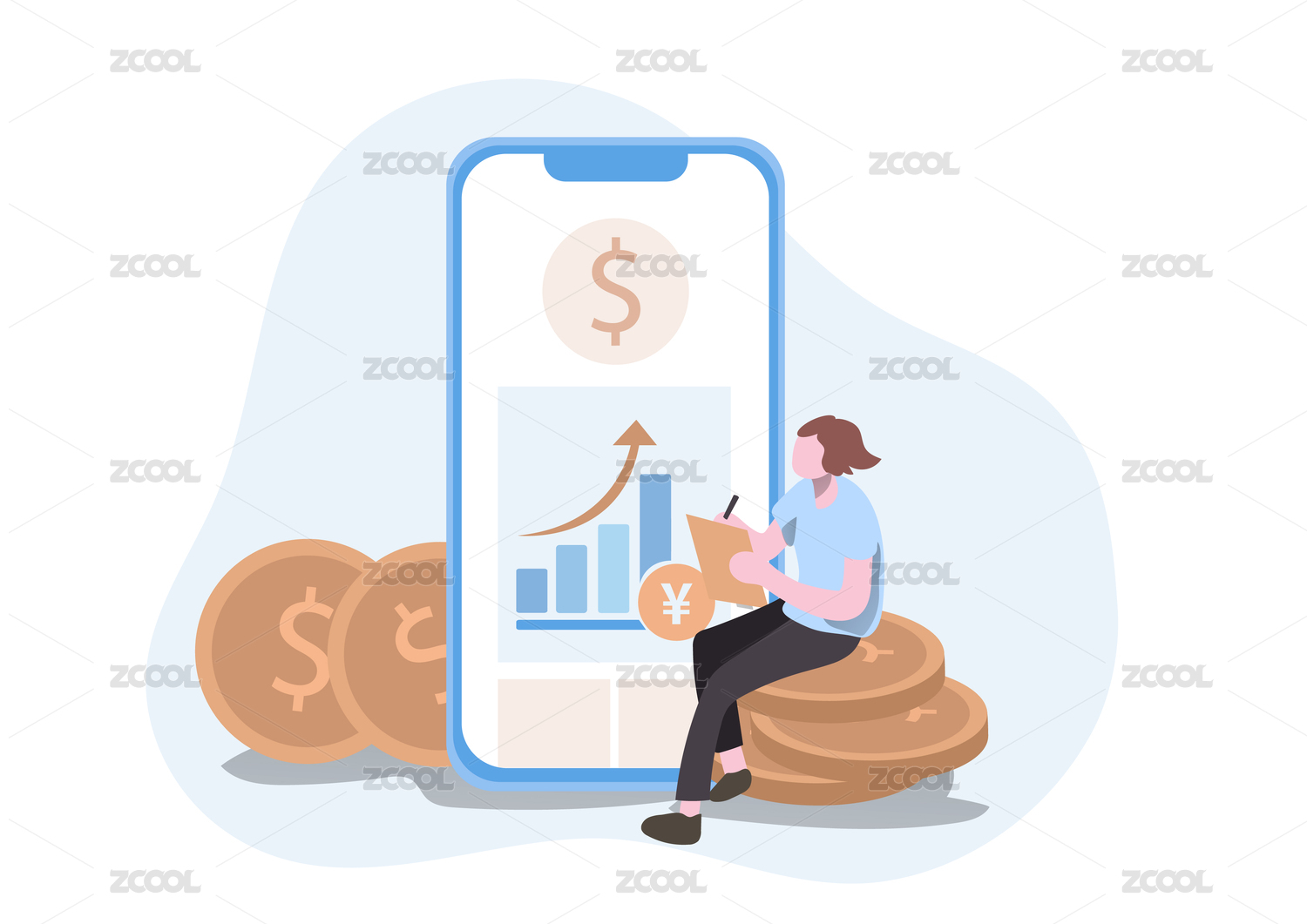 手机理财插画
