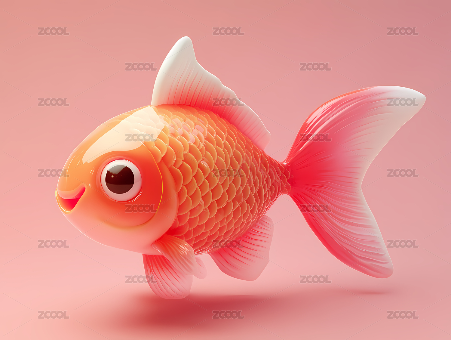 可爱的锦鲤3d形象,新年跳跃琉璃材质鲤鱼