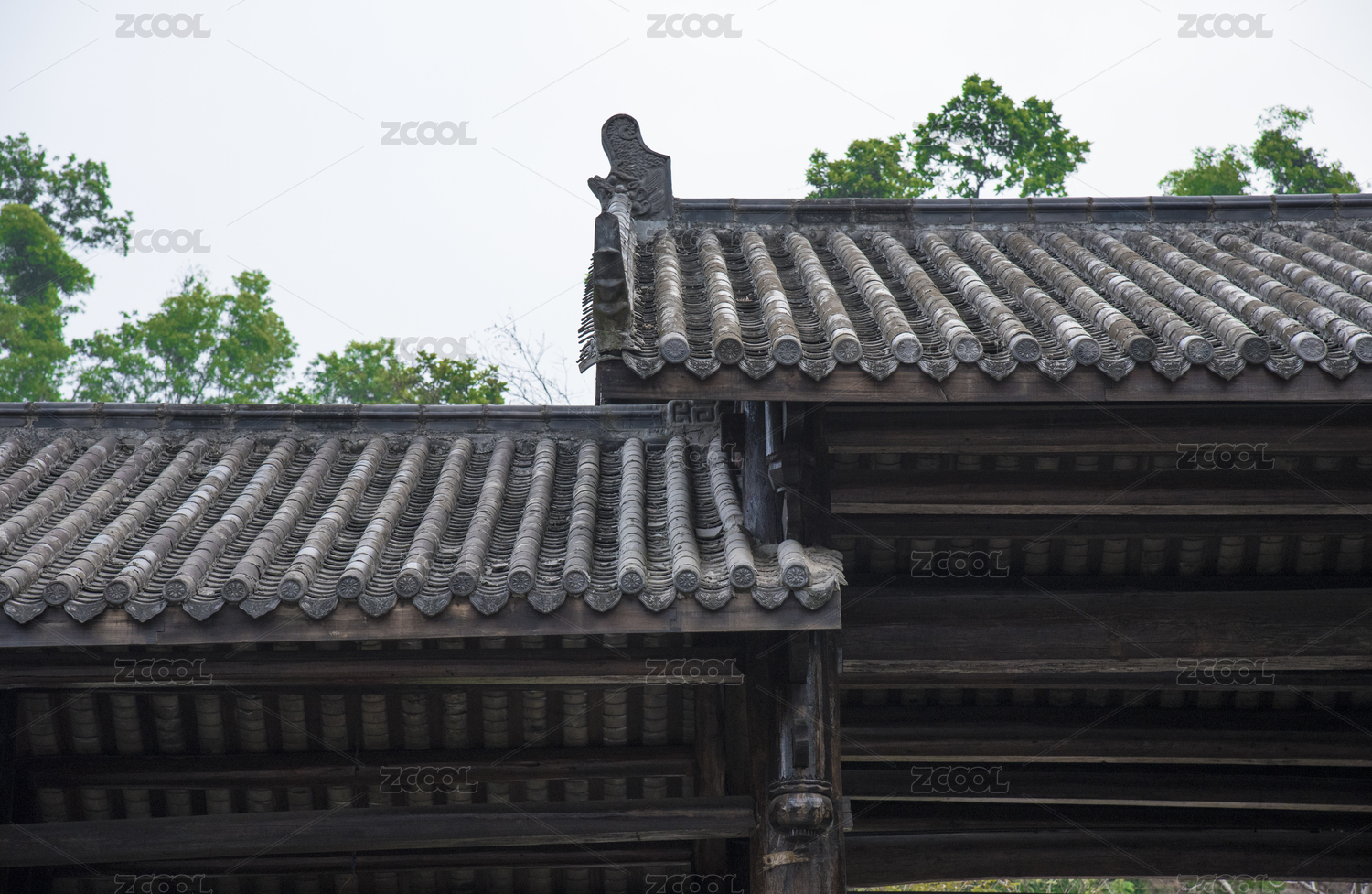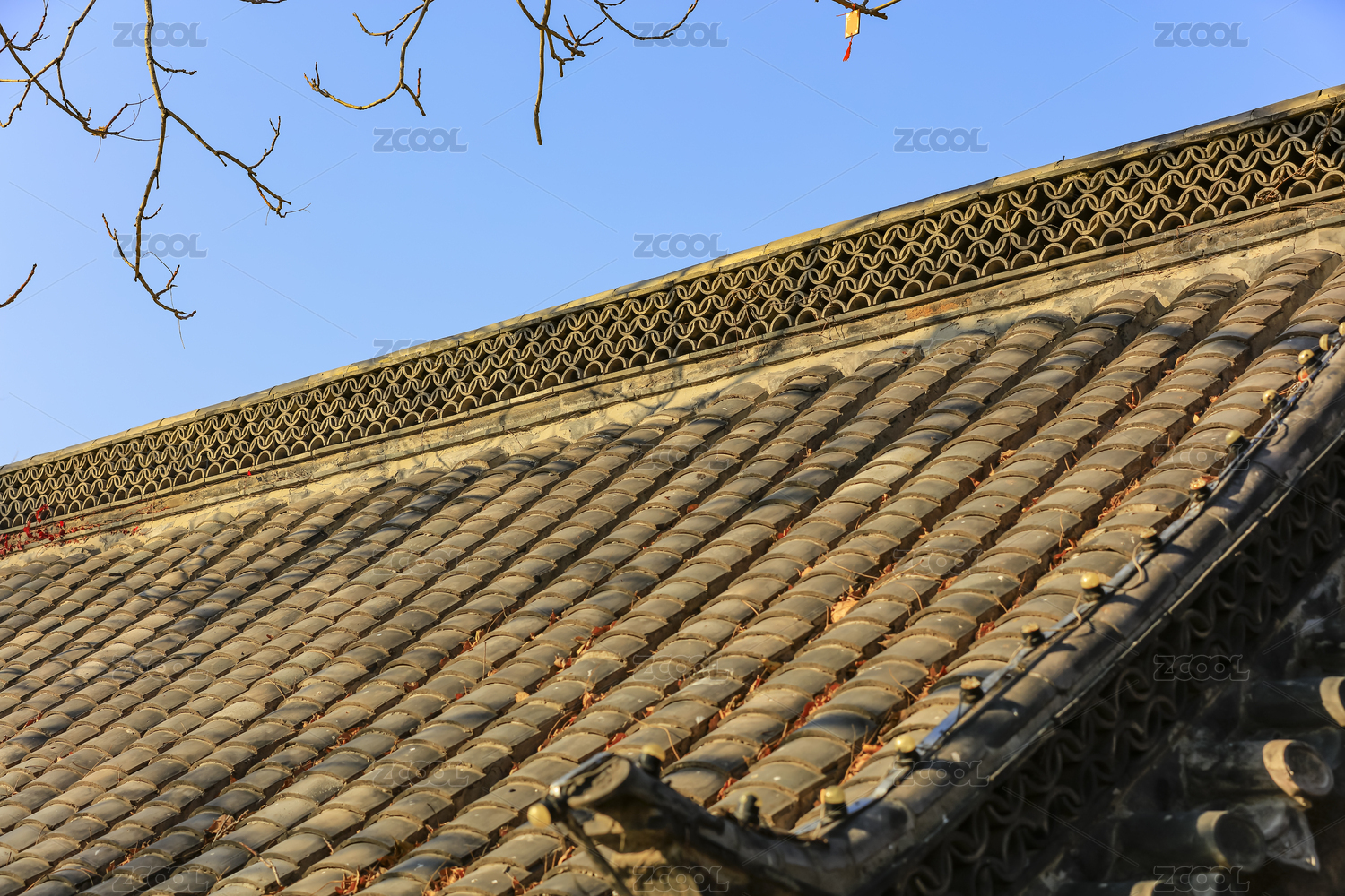 古建筑屋脊的瓦