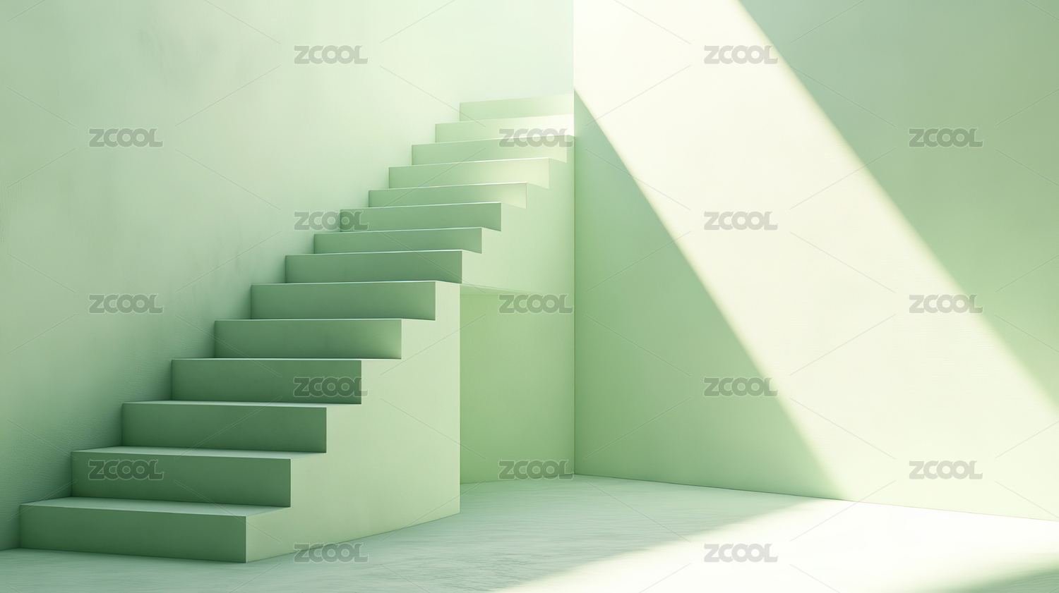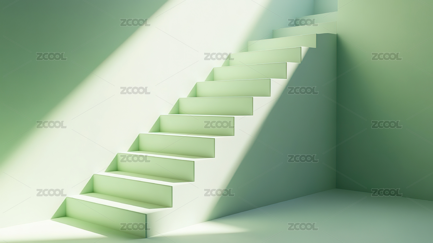 绿色背景下的空楼梯