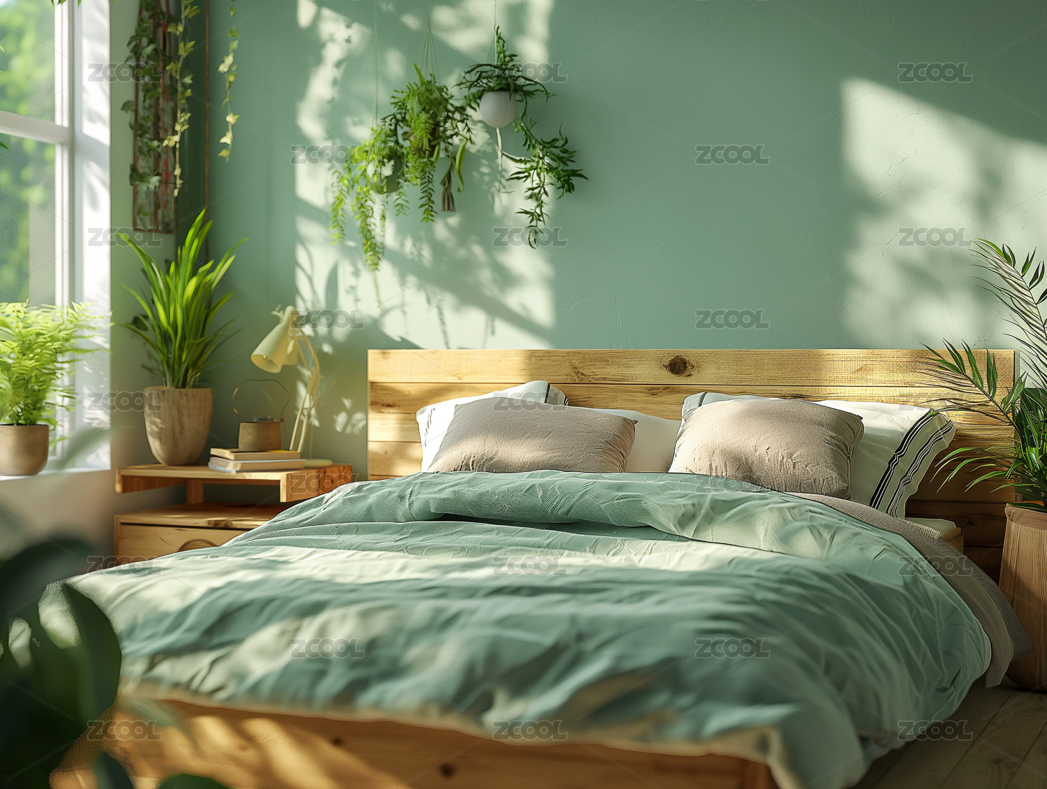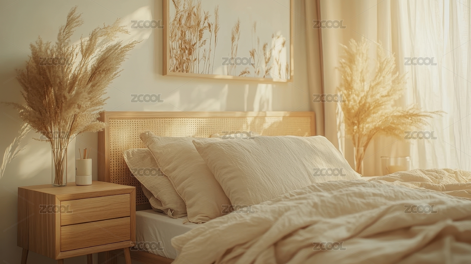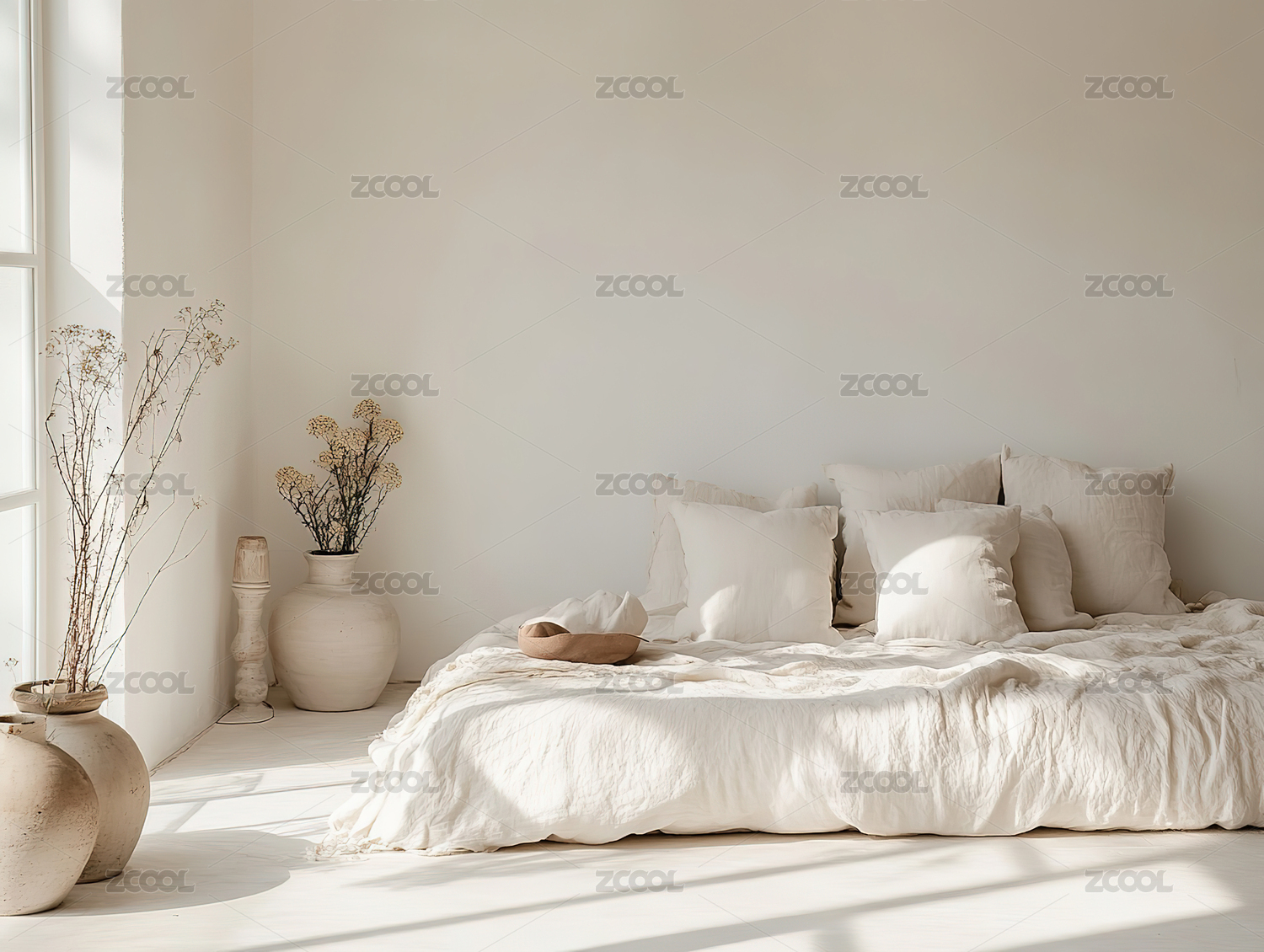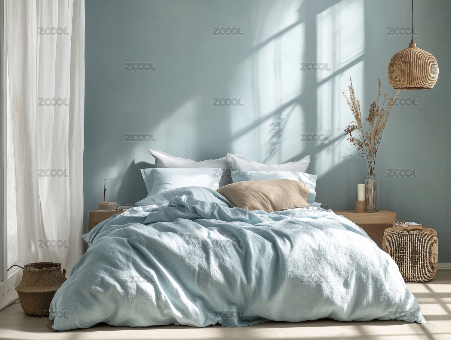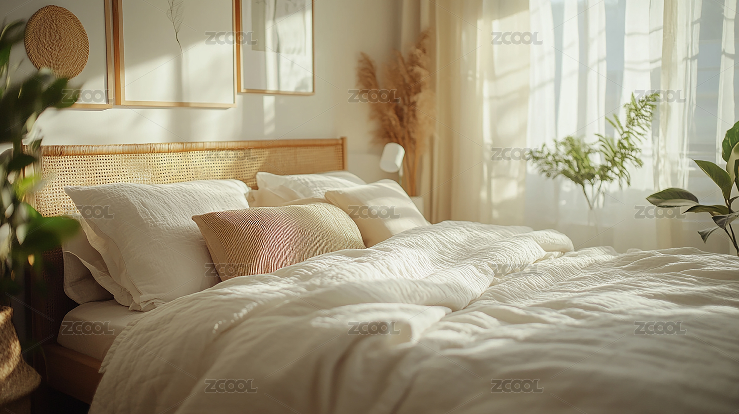 现代简约北欧温馨卧室装饰装修3D立体插画