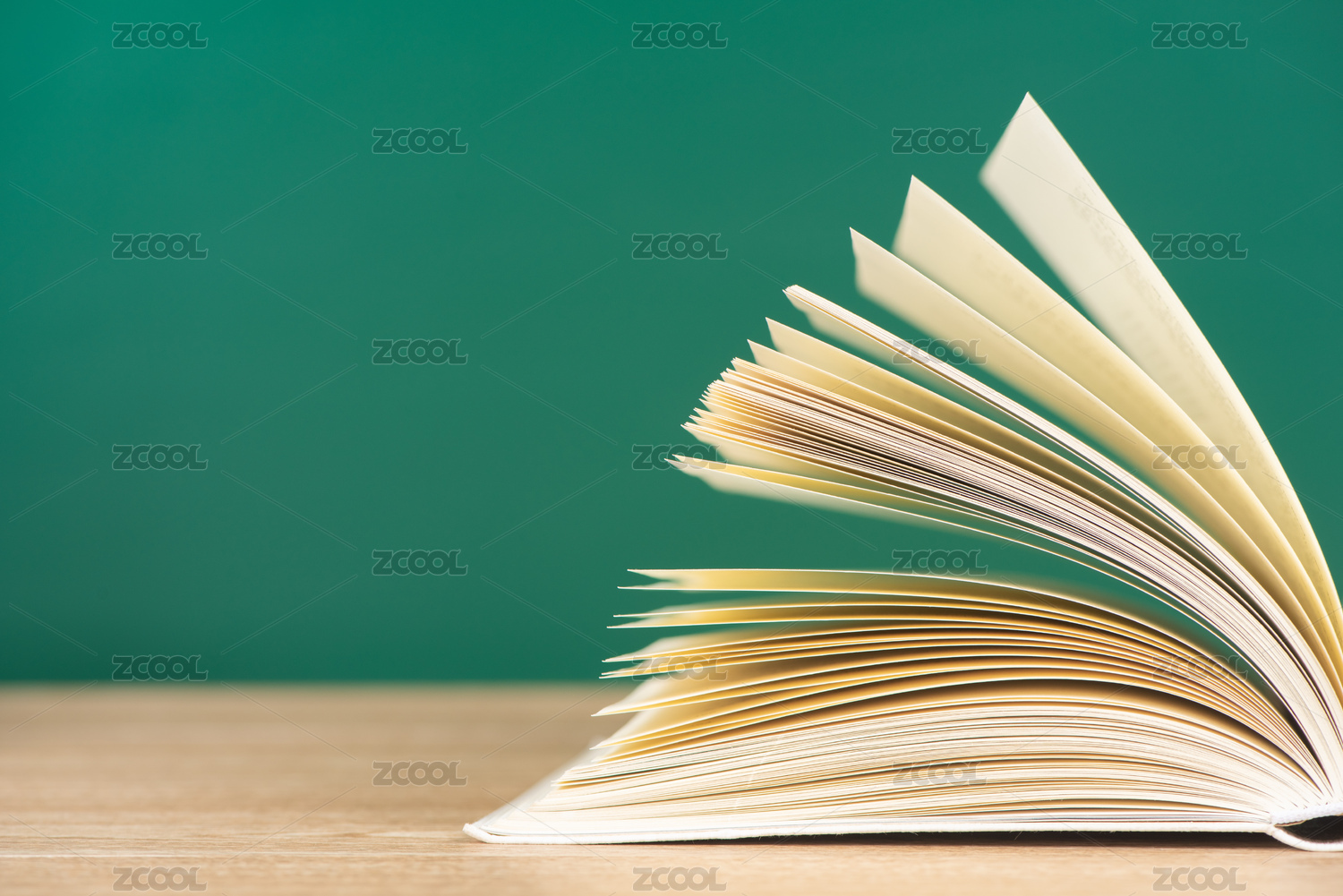 书,书籍,书本,一摞,翻开,黑板,教室,书桌,桌子,翻阅