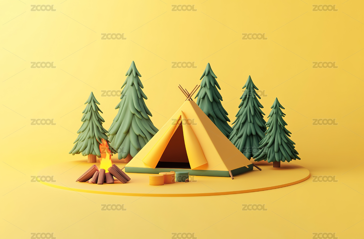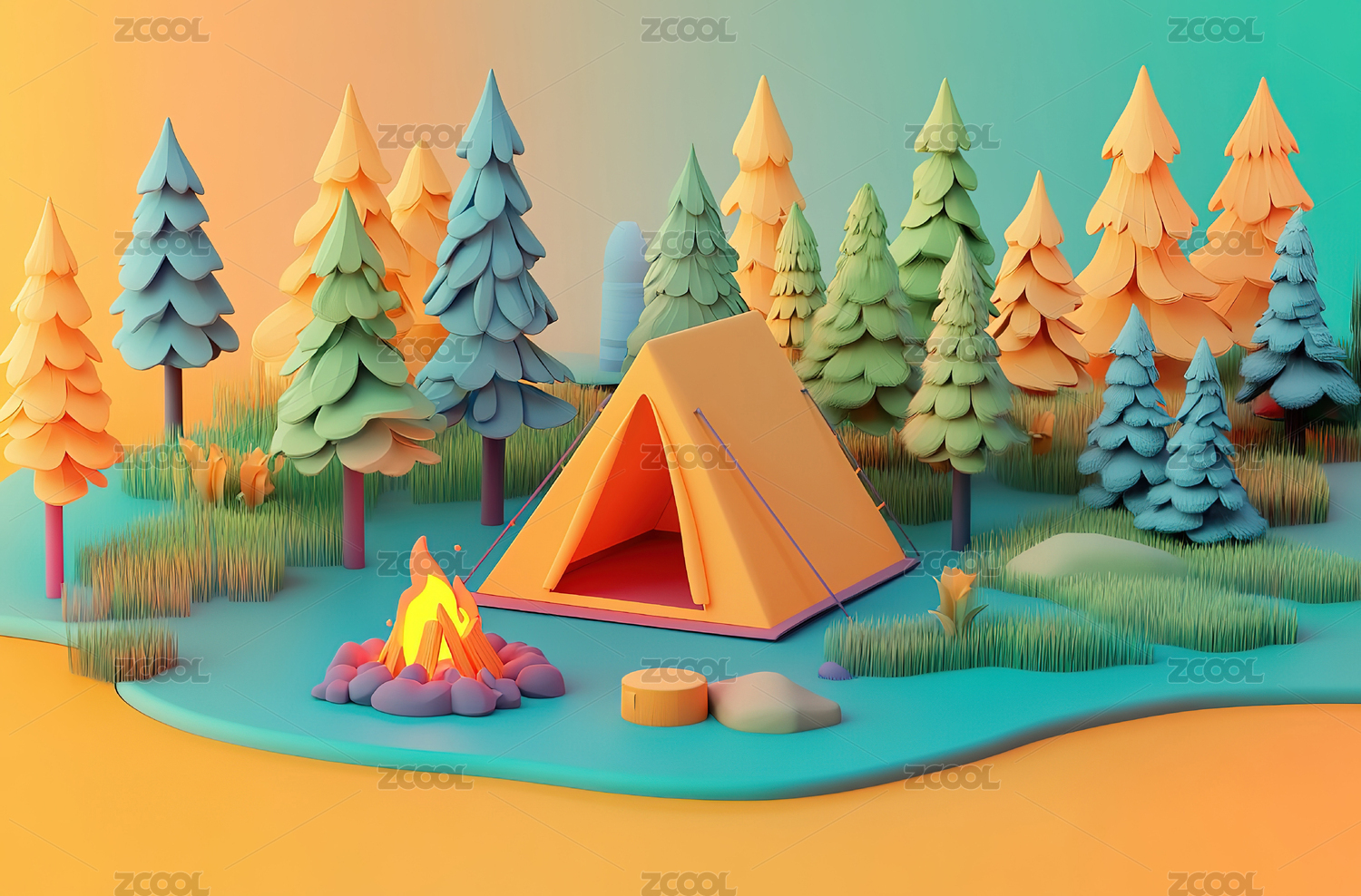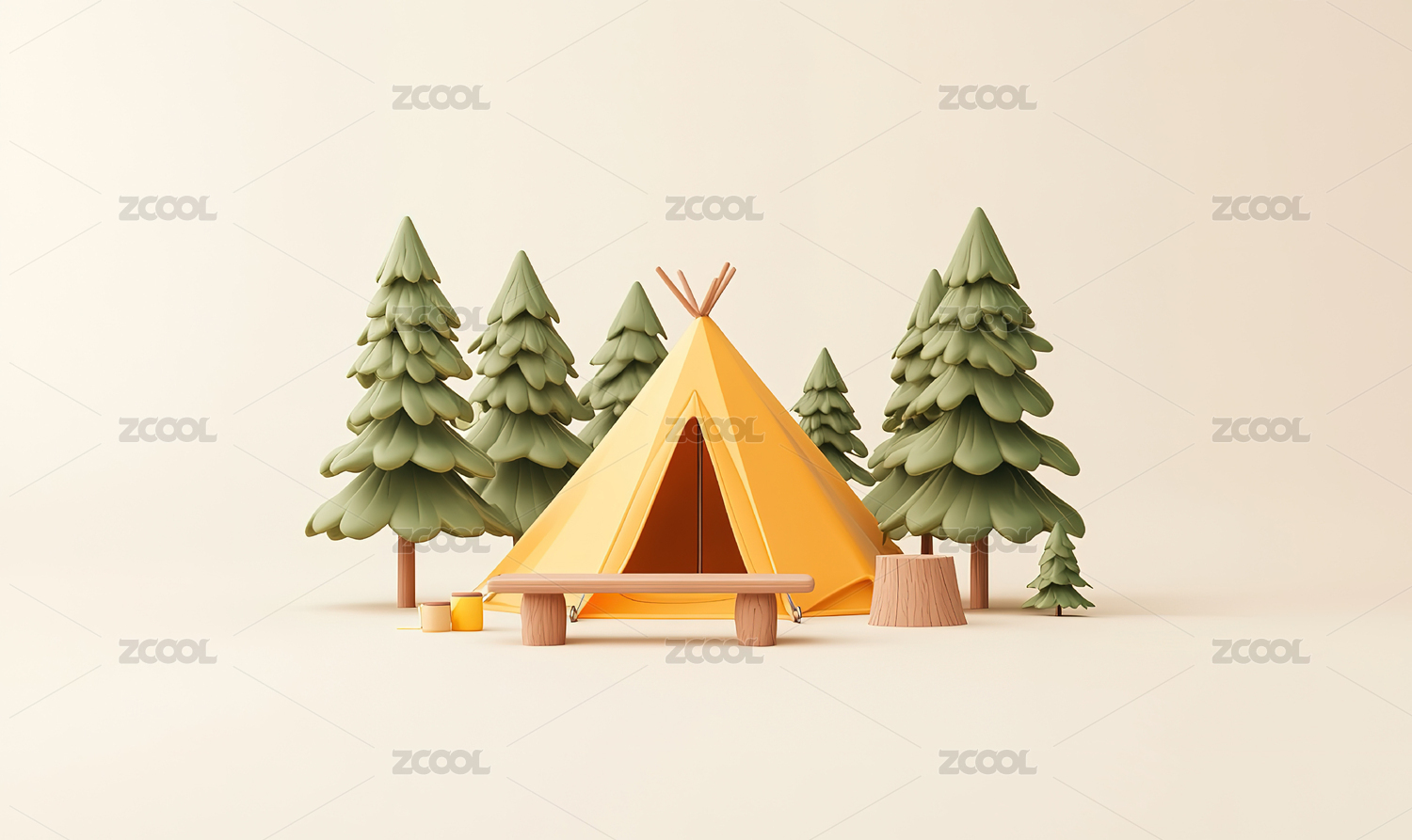 帐篷,森林,树木,蘑菇,果实,自然,露营,秋季,3D,渲染