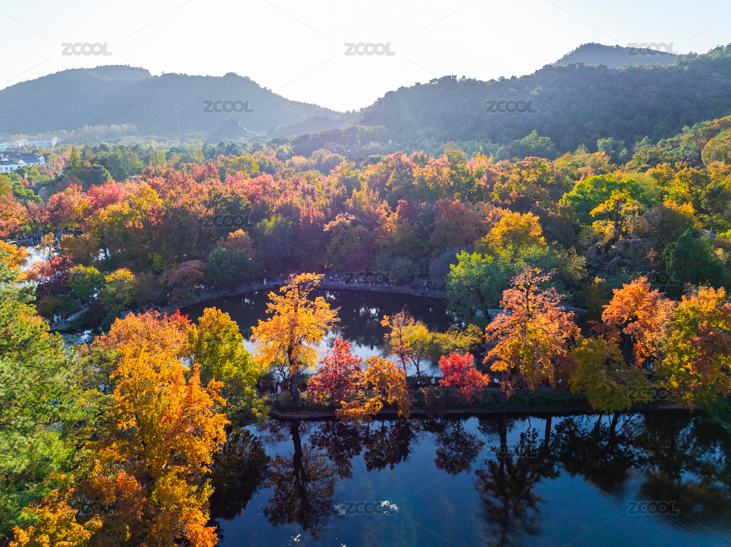 航拍秋天的中国江苏南京明孝陵神道与美龄宫全景
