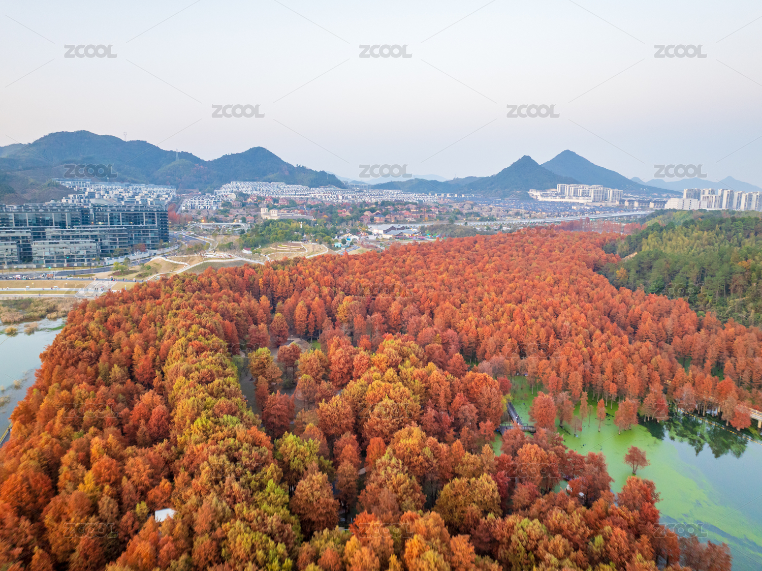 贵州省遵义市新蒲湿地公园人行步道色彩斑斓